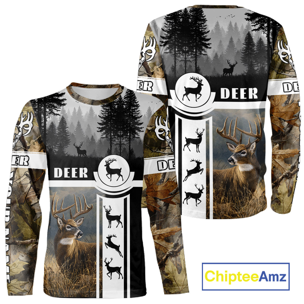Designed for deer hunters and outdoor enthusiasts, this shirt blends style, comfort, breathable and funtionality in one. The unique hunting-inspired design can be personalized with your name, along with details like the American flag, camouflage patterns, and more - making it the perfect gift ideas for hunters during deer hunting season.