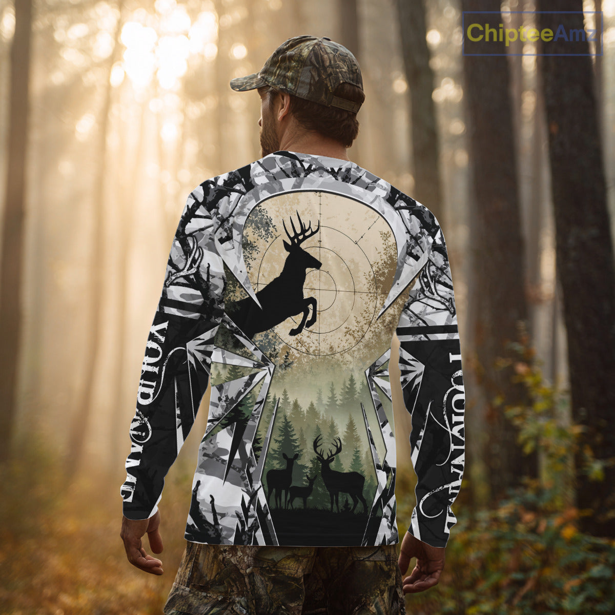 Personalized Deer Hunting Hoodie/ Long sleeves Shirts. Designed for deer hunters and outdoor enthusiasts, this shirt blends style, comfort, and funtionality in one. The unique hunting-inspired design can be personalized with your name, along with details like the American flag, camouflage patterns, and more - making it the perfect gift ideas for hunters during deer hunting season.