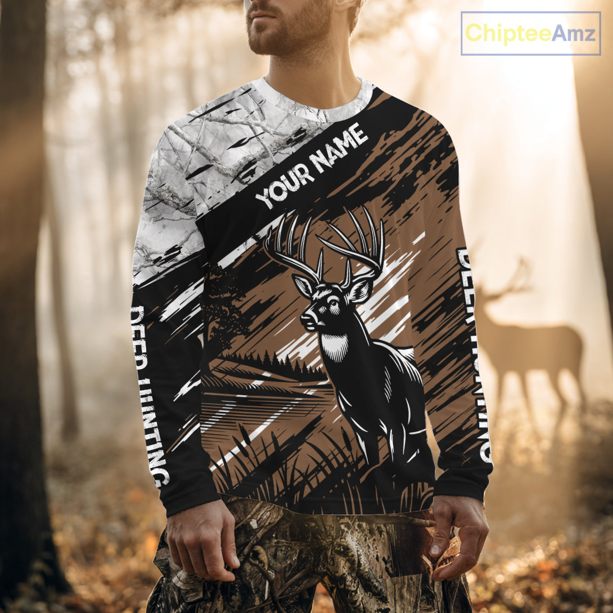 Inspired by the thrill of the hunt and the beauty of the outdoors, this shirt combines durability, comfort, and a unique hunting vibe. Customize it with your name or preferred design elements — from deer graphics to scenic landscapes — to create a one-of-a-kind piece. A perfect gift for passionate deer hunters and outdoor lovers, especially during hunting season.