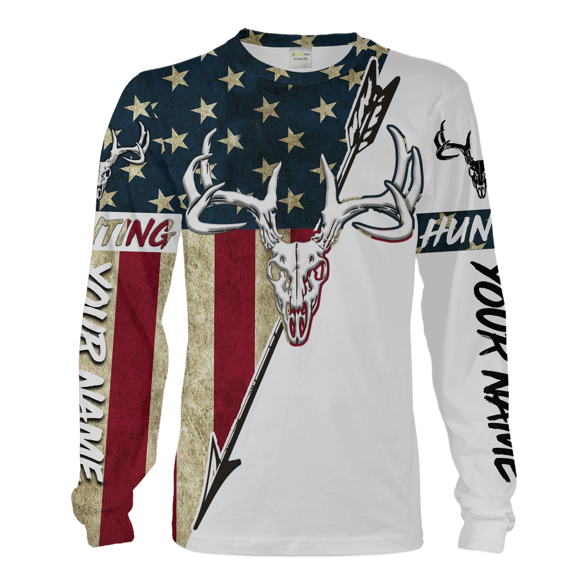 Bow Hunter Deer Hunting American Flag Custom All over print Shirts, Deer skull shirts - IPHW1158