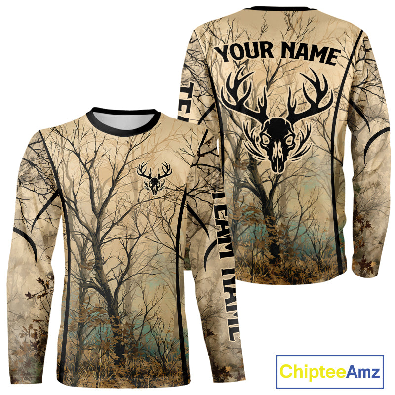 Personalized Deer Hunting Hoodie/ Long sleeves Shirts. Designed for deer hunters and outdoor enthusiasts, this shirt blends style, comfort, and funtionality in one. The unique hunting-inspired design can be personalized with your name, along with details like the American flag, camouflage patterns, and more - making it the perfect gift ideas for hunters during deer hunting season.