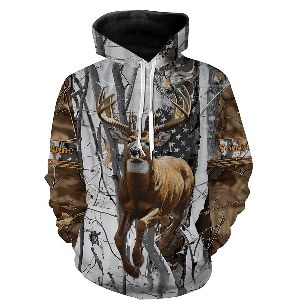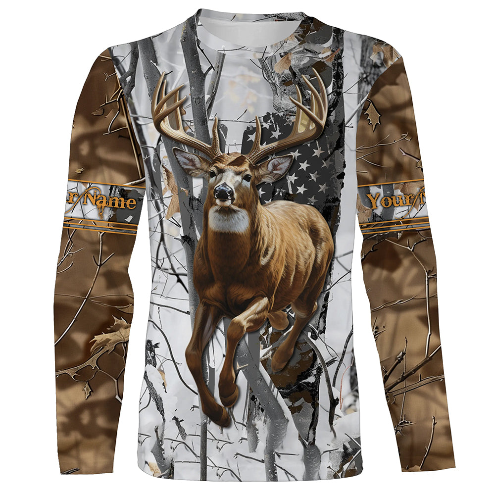Deer Buck American Flag Custom Name 3D All over printed Shirts, Deer Hunting Shirt, Personalized Hunting Gifts - FSD2987