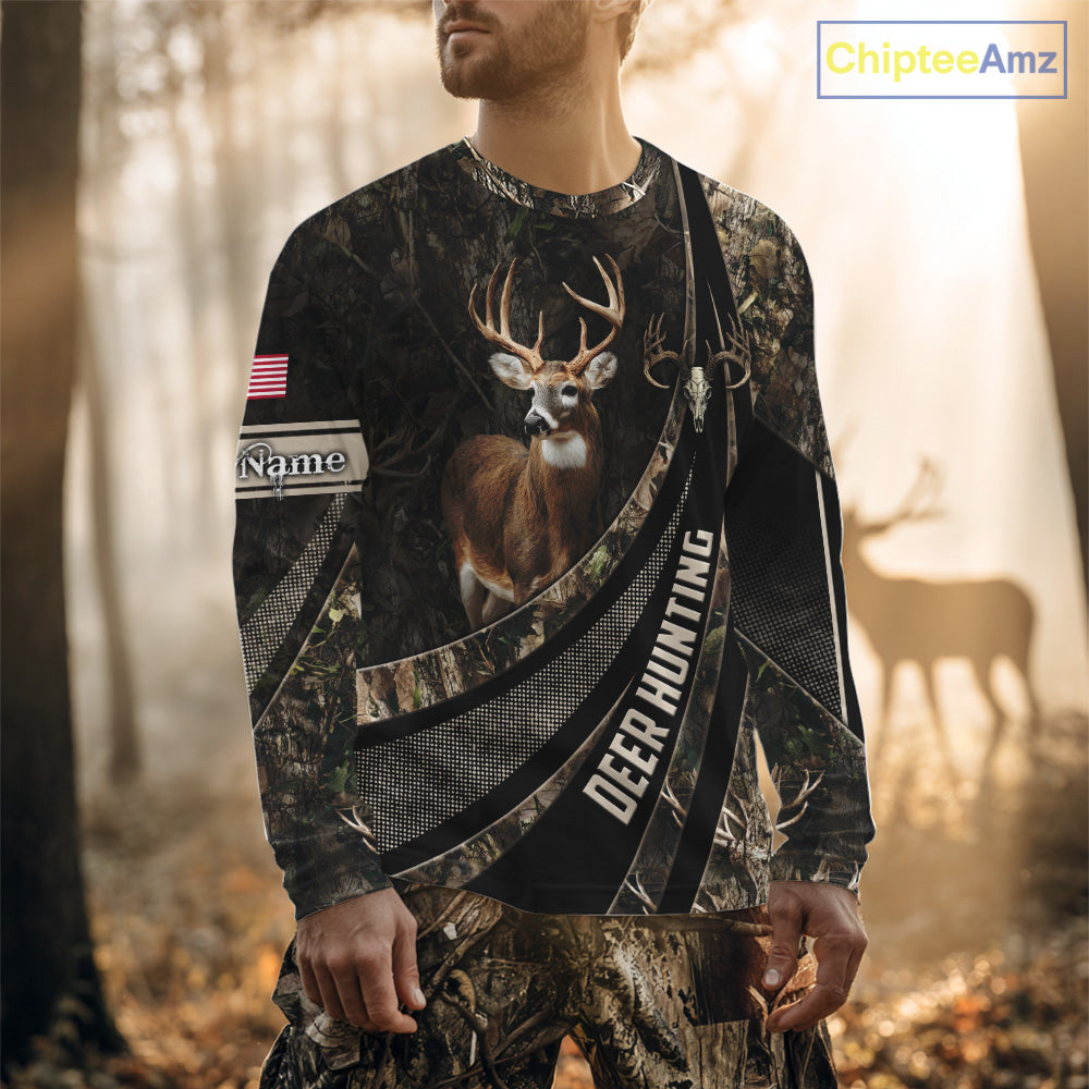 Whitetail Deer Hunting Shirt Camouflage US Flag, Deer Hunter Custom Name, Hunting Gift NHT123