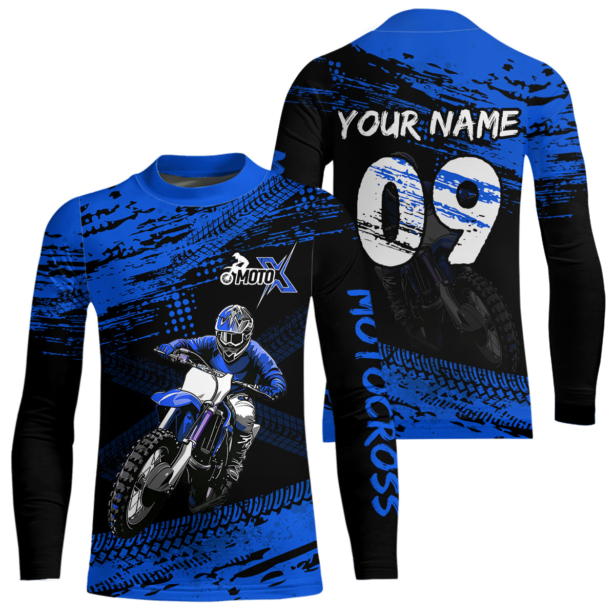 Adult&Kid Blue Custom Dirt Bike Jersey Motocross Jersey Upf30+ Motocross Shirt| CTP88