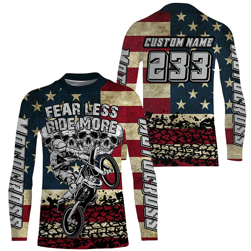 American Flag Custom Skull Motocross Jersey UPF30+ Patriotic Dirt Bike Racing Motorcycle Shirt NMS1238
