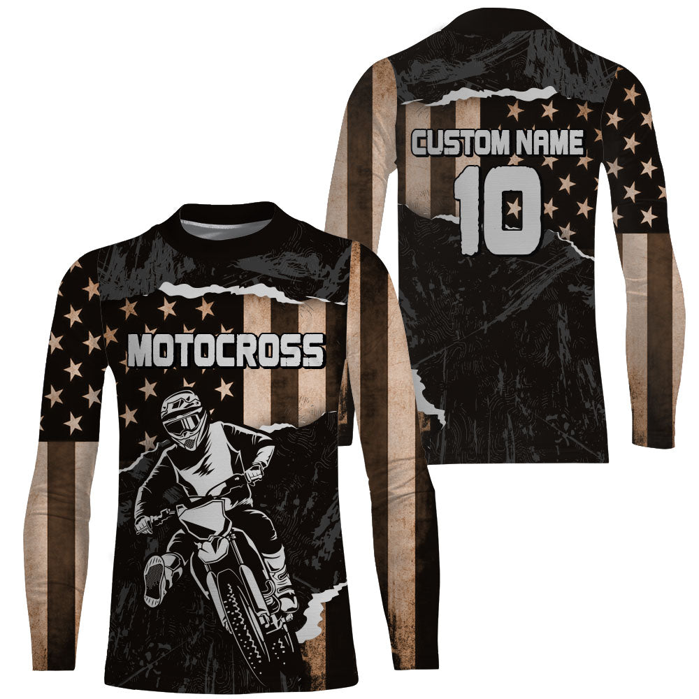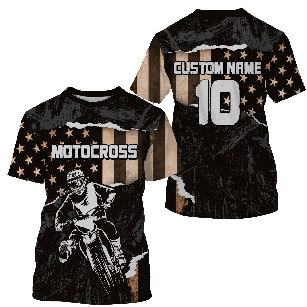 American Flag Motocross Jersey UPF30+ Custom Dirt Bike Shirt Men Women Youth Patriotic MX Racing PDT449