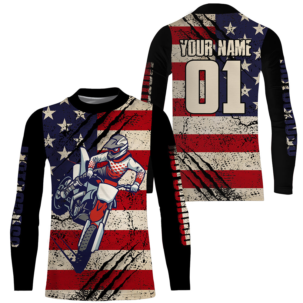 American Flag MX Jersey UPF30+ Custom Dirt Bike Shirt Men Women Kid Long Sleeve Motocross Patriotic PDT483