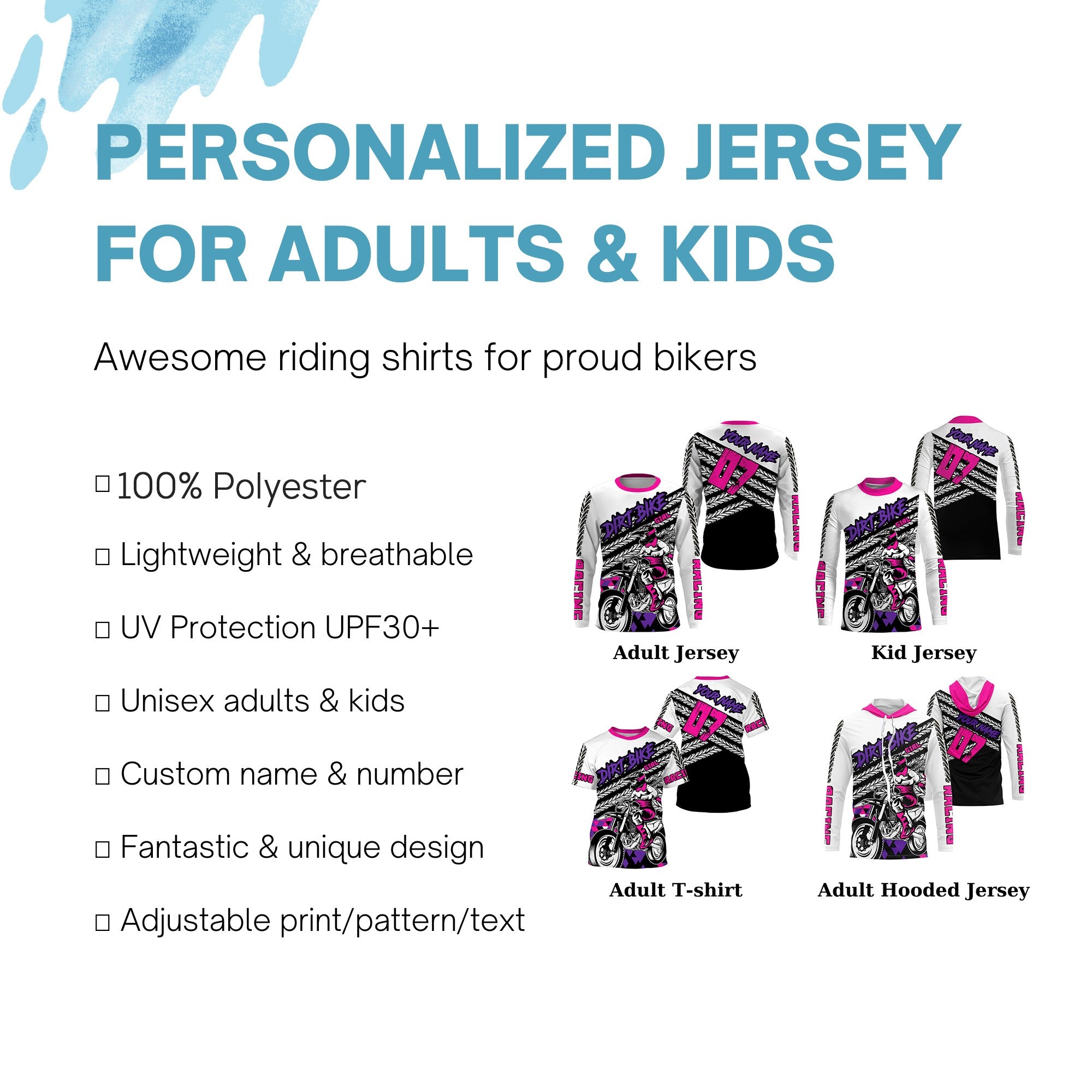 Biker girl pink custom MX jersey UPF30+ dirt bike kid adult Motocross racing shirt motorcycle PDT60