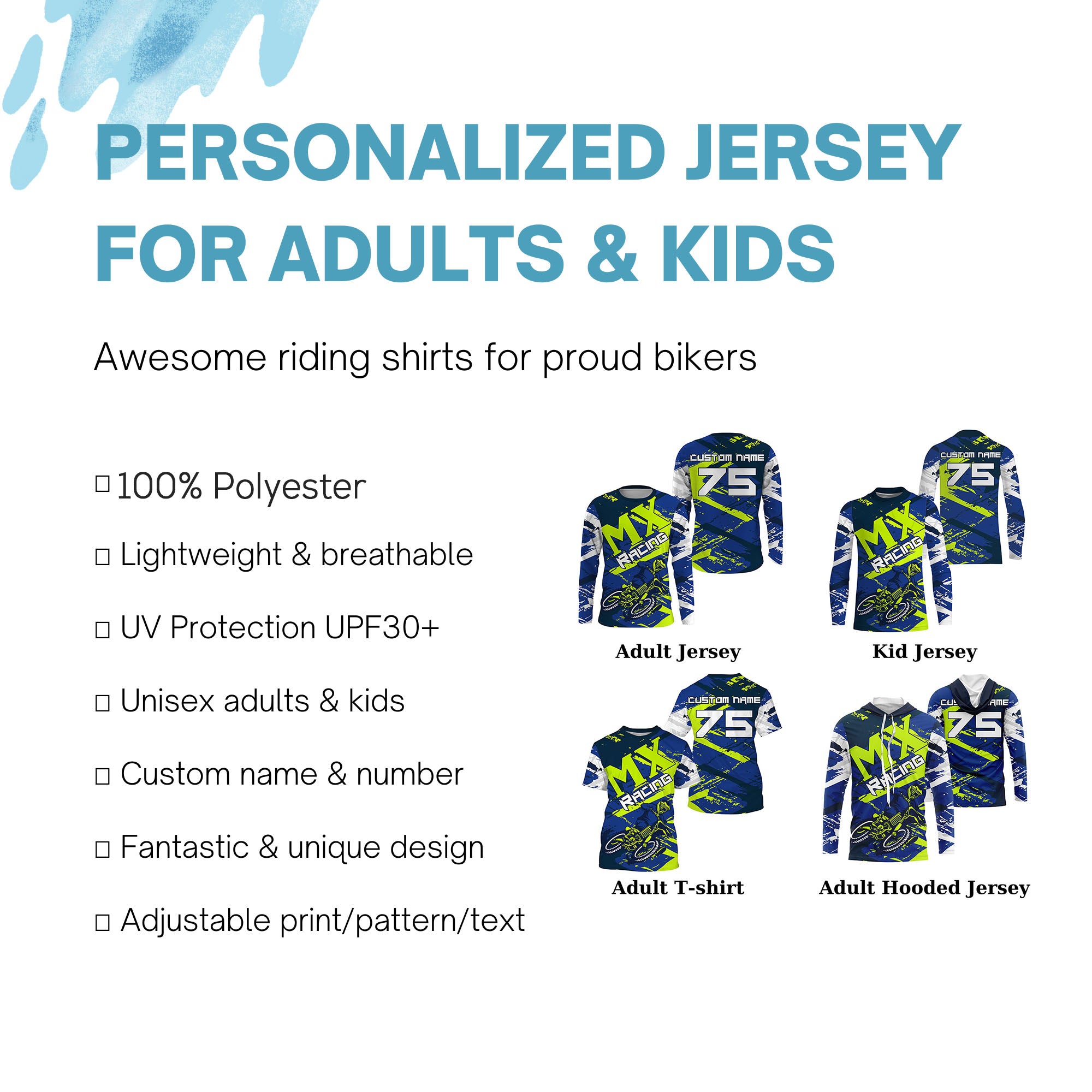 Blue Motocross jersey dirt bike custom shirt UPF30+ for kid men women MX racing off-road racewear PDT103