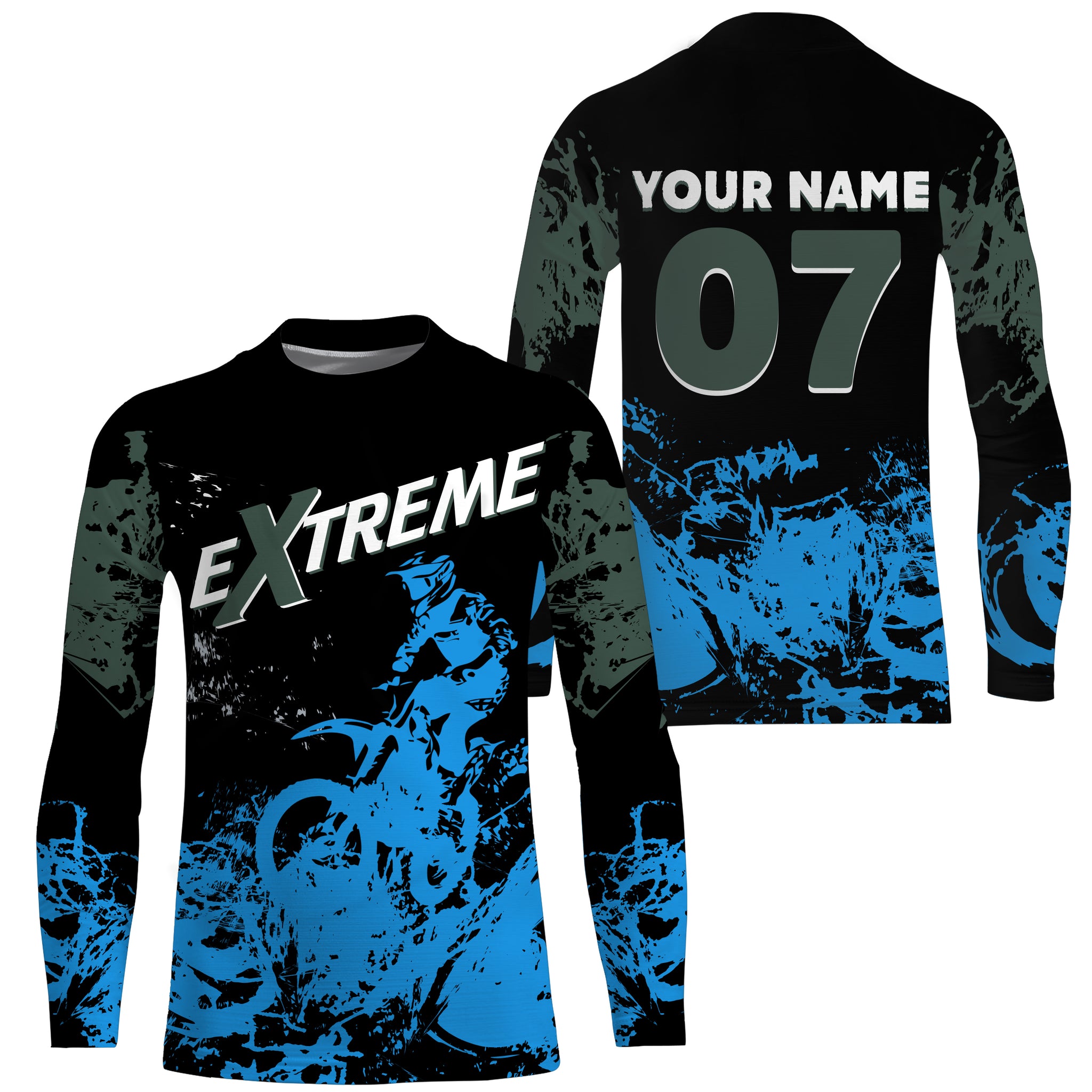 Custom Blue MX Jersey Kid Men Women UPF30+ Dirt Bike Off-Road Shirt Motocross Motorcycle Riding PDT599