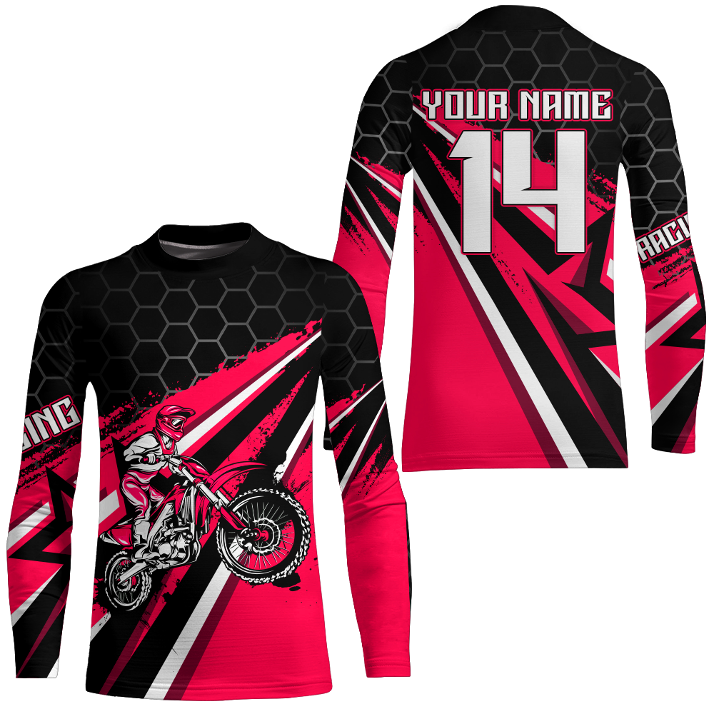 Custom Dirt Bike Jersey Pink UPF30+ Kid Motocross Shirt Boys Girls MX Jersey Men Women Motorcycle PDT596