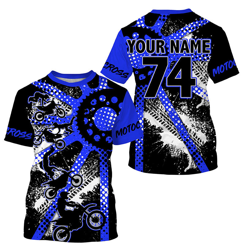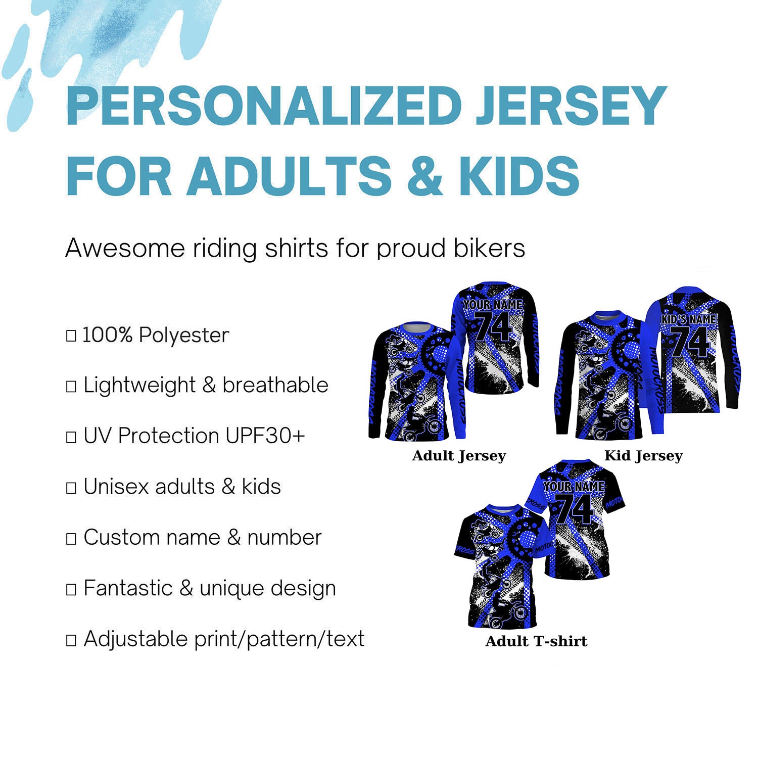 Dirt bike freestyle kid men women custom MX jersey UPF30+ blue Motocross gear racing shirt PDT298