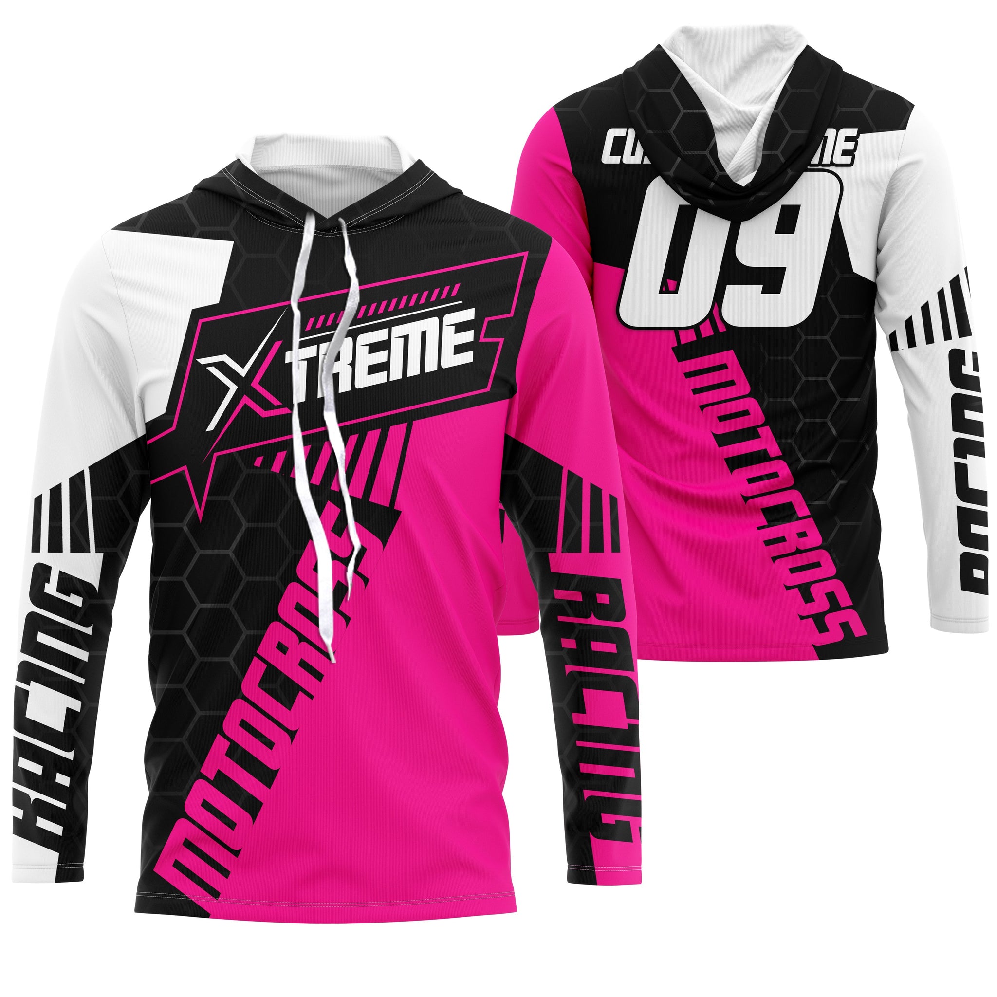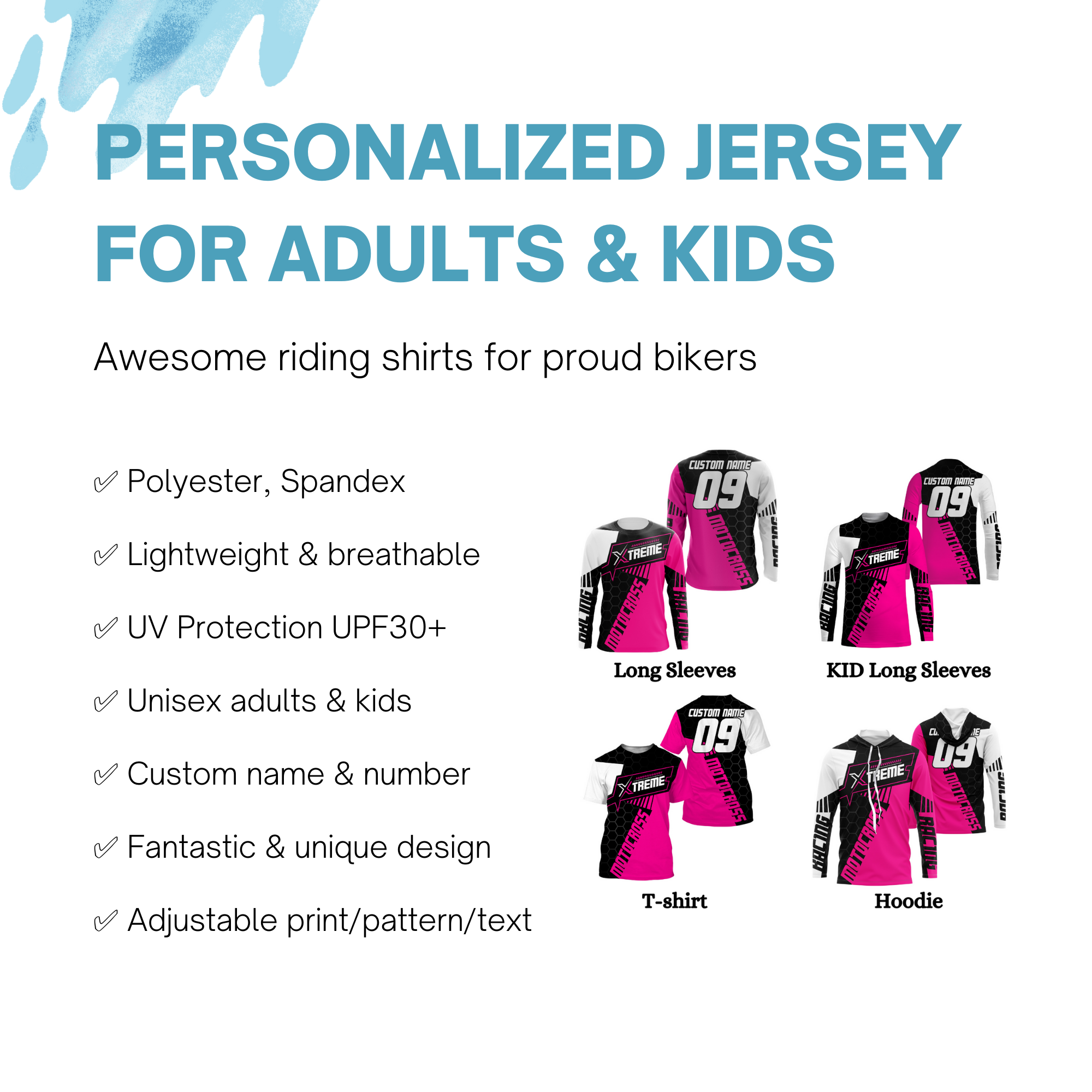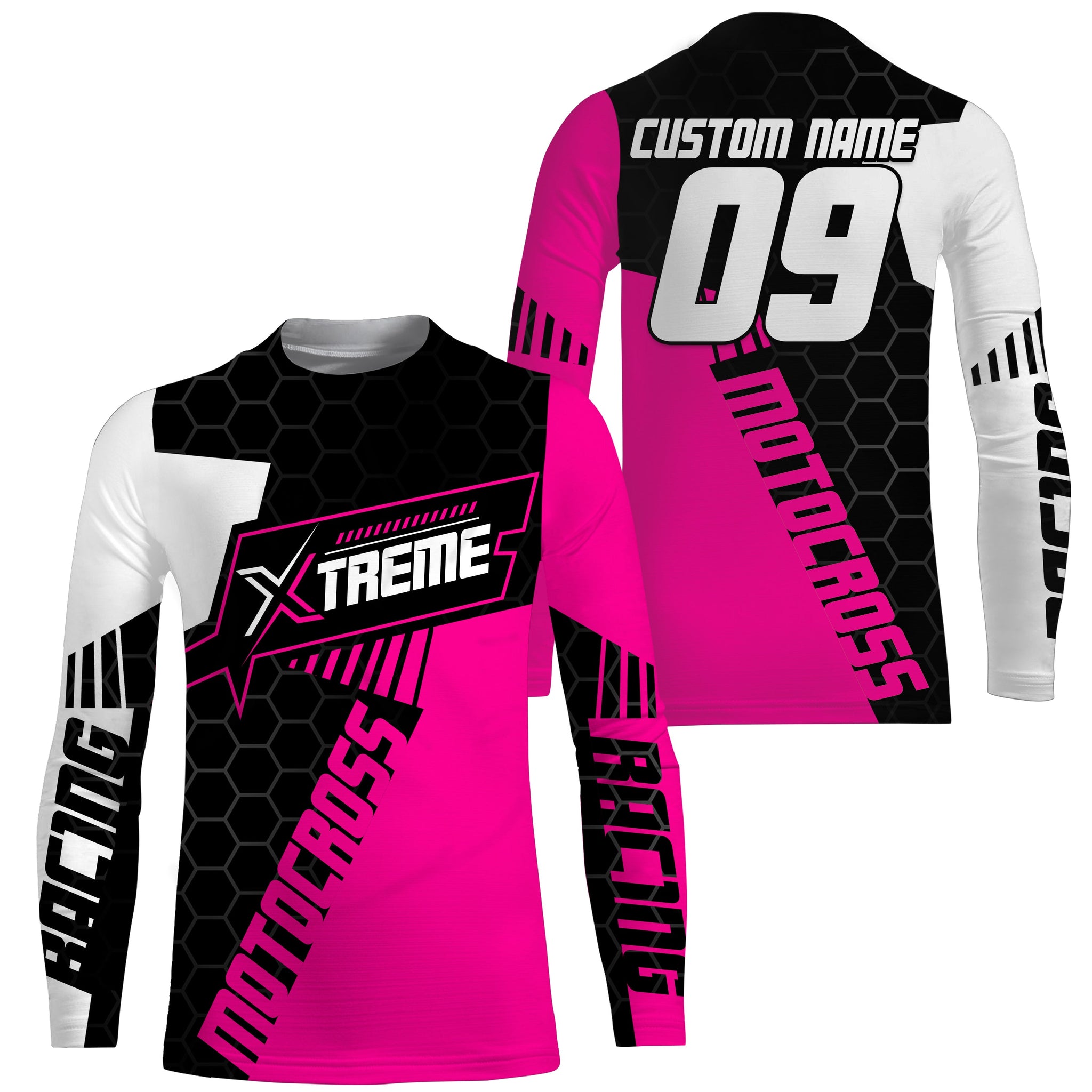 Extreme Motocross Jersey Personalized UPF30+ Racing Shirt Dirt Bike Off-road Biker Motorcycle - Pink NMS631
