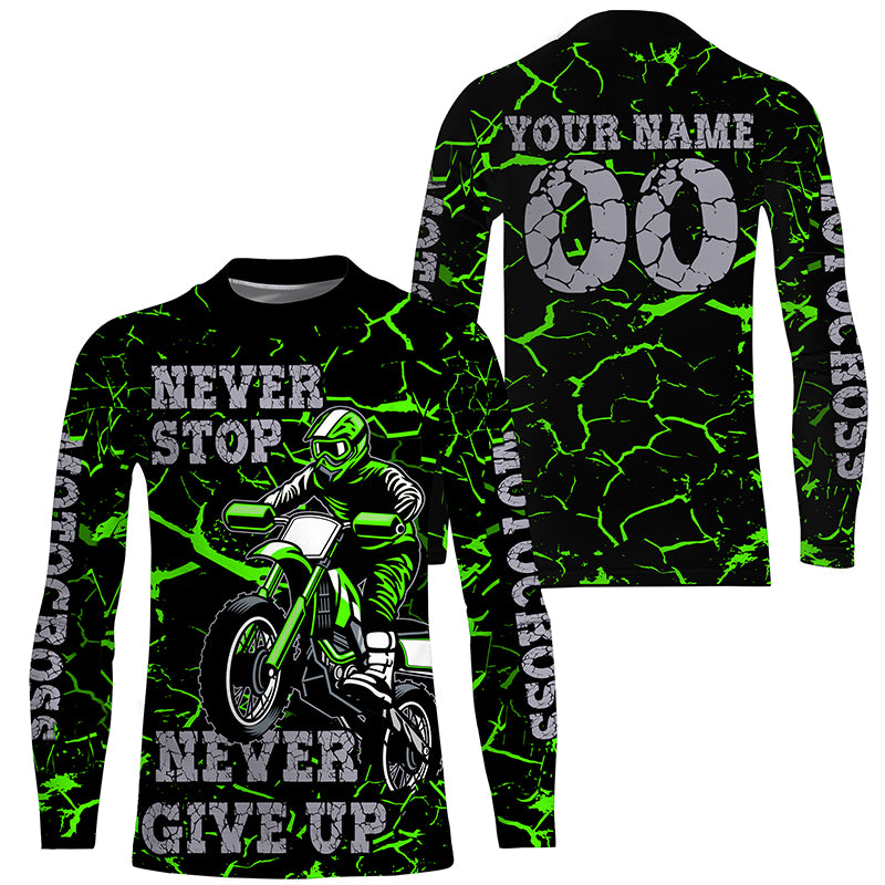 Green Motocross Jersey Personalized UPF30+ Never Stop Dirt Bike Shirt For Boys Racing Motorcycle PDT456