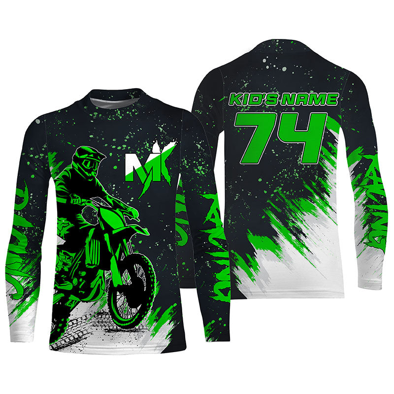 Green Motocross Racing Jersey Men Women Youth UPF30+ Custom Dirt Bike Shirt Off-Road Long Sleeve MX PDT447