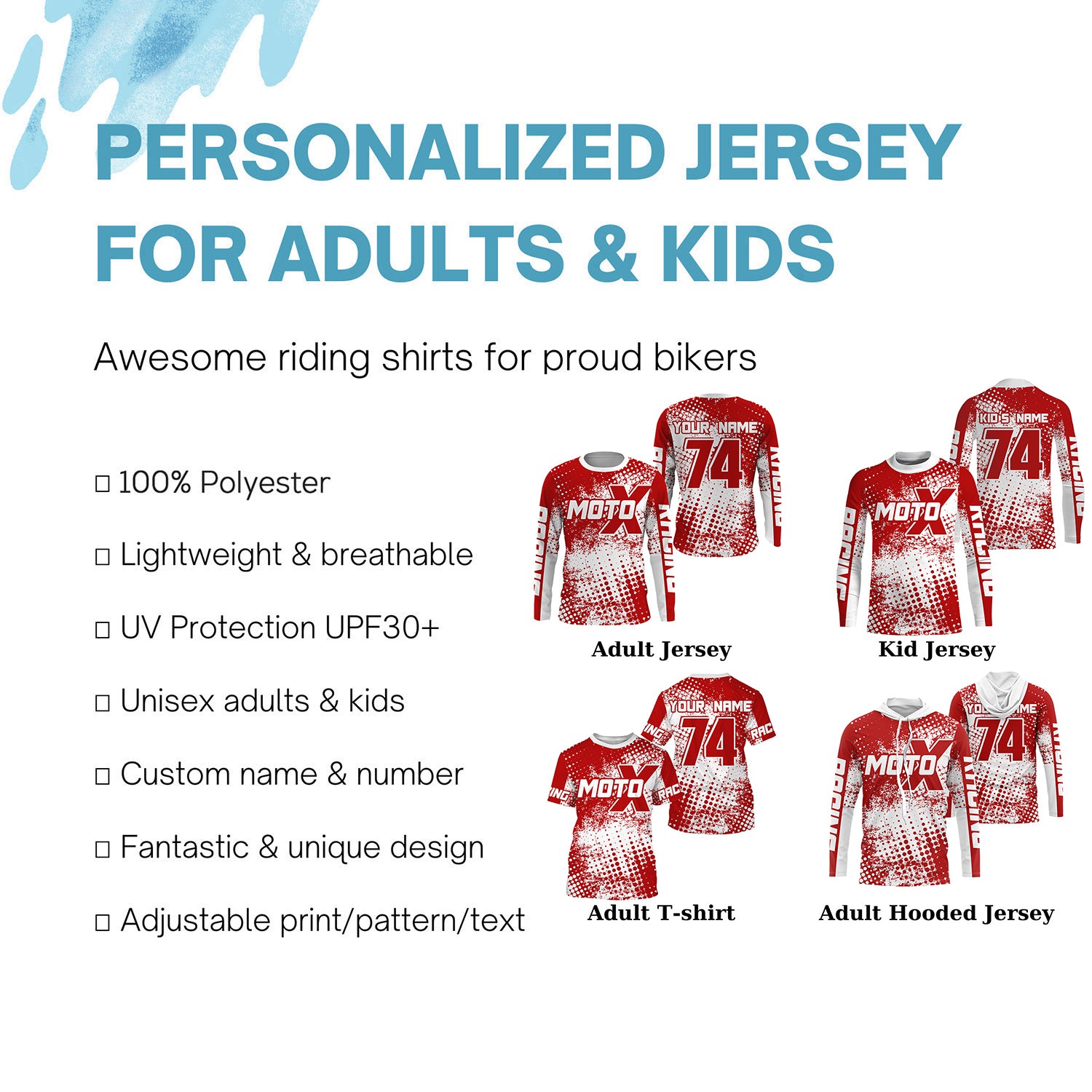 Motocross custom kid youth adult dirt bike jersey red MX racing shirt UPF30+ extreme racewear PDT91