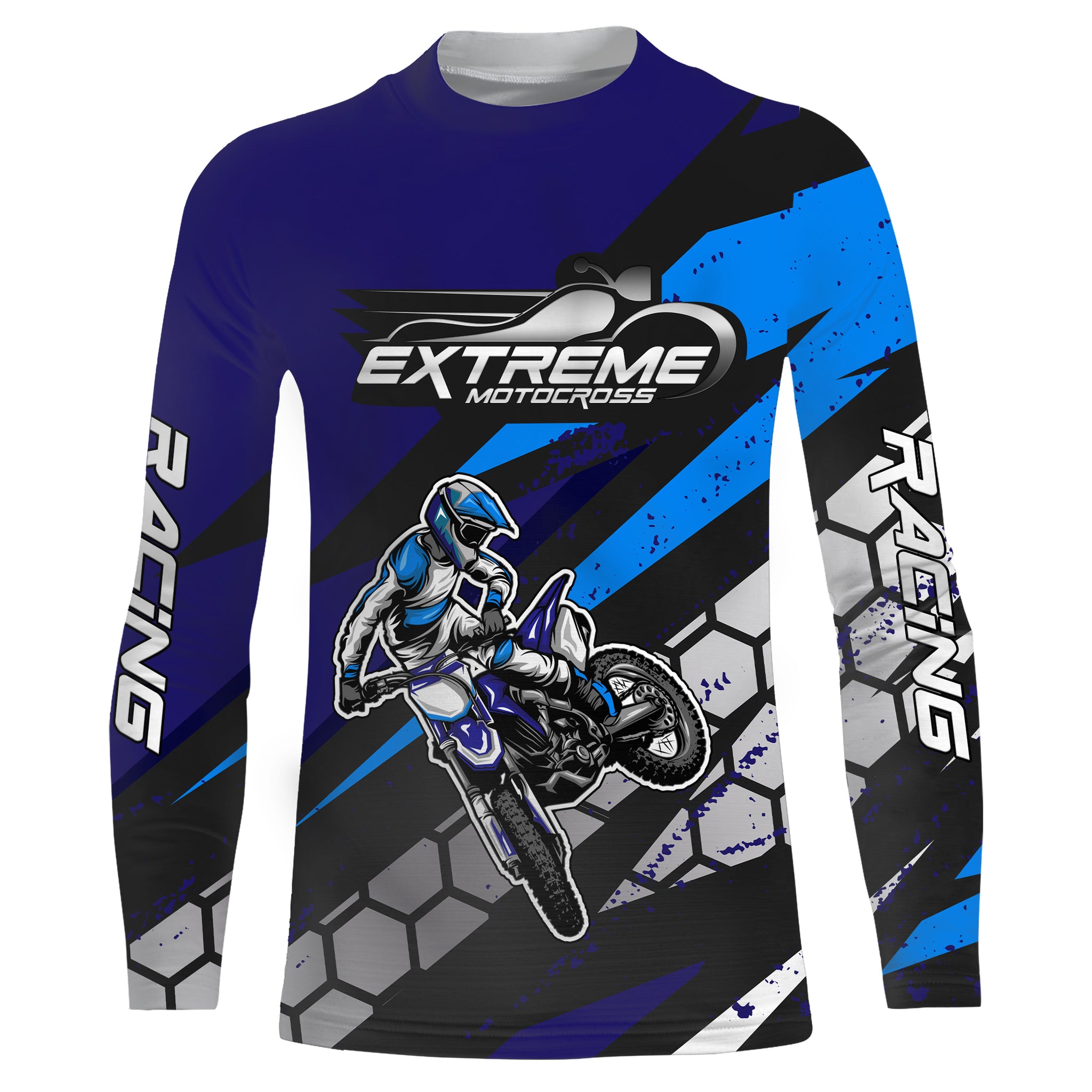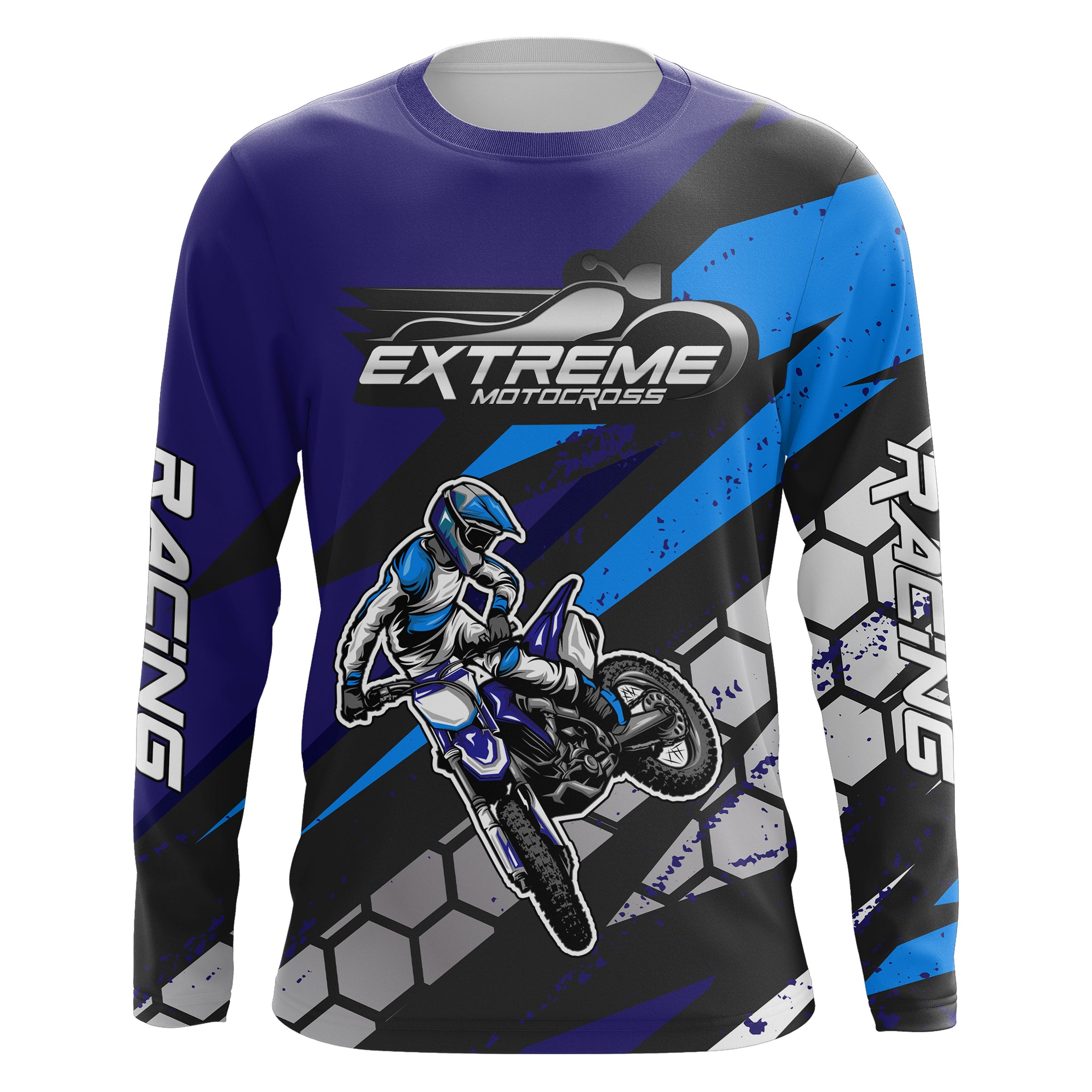 Motocross Jersey Blue UPF30+ Youth Kids Mens Dirt Bike Shirt Extreme Racing Shirt Off-Road XM35