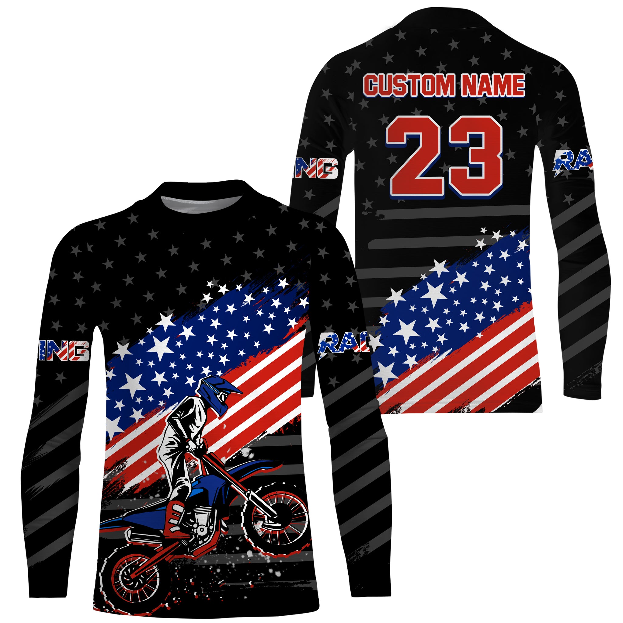 Motocross Jersey UPF30+ American Flag Dirt Bike Racing Shirt Youth Off-Road Jersey Kid Men XM114