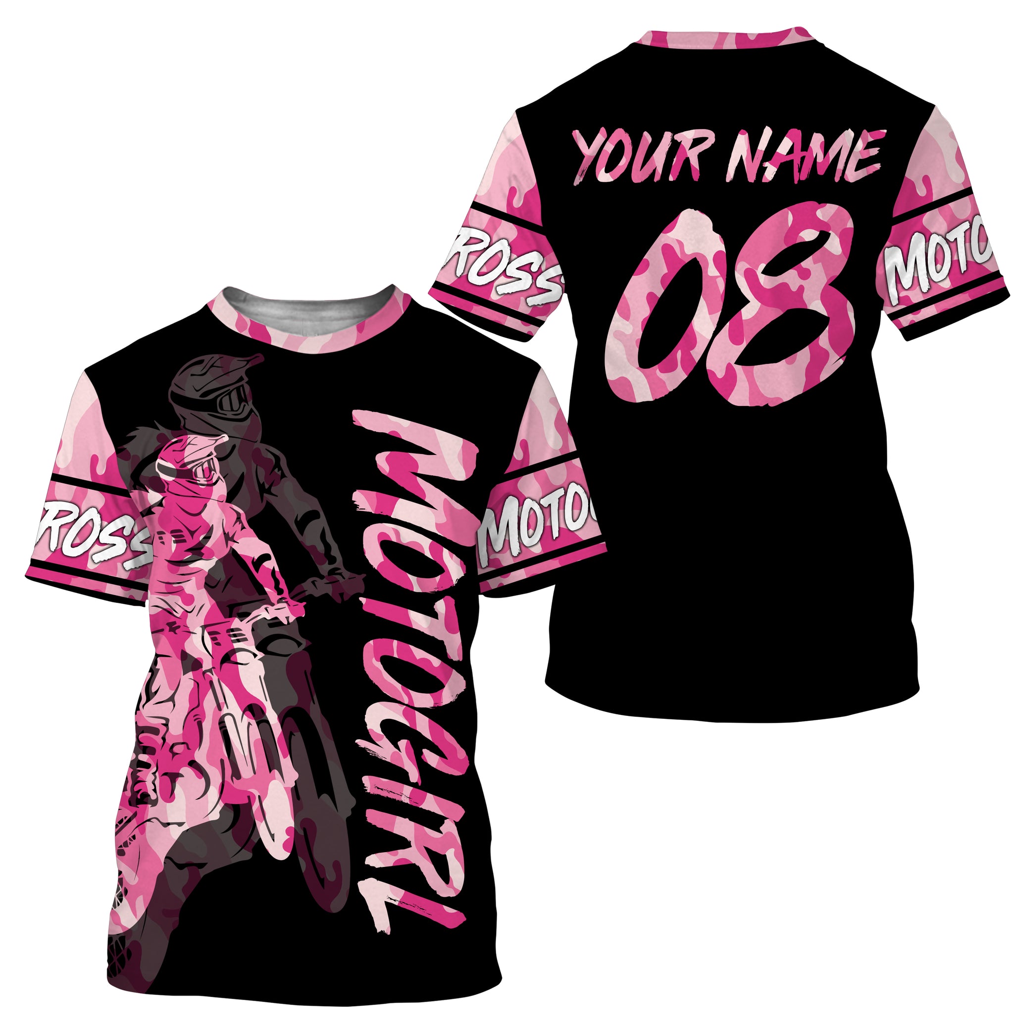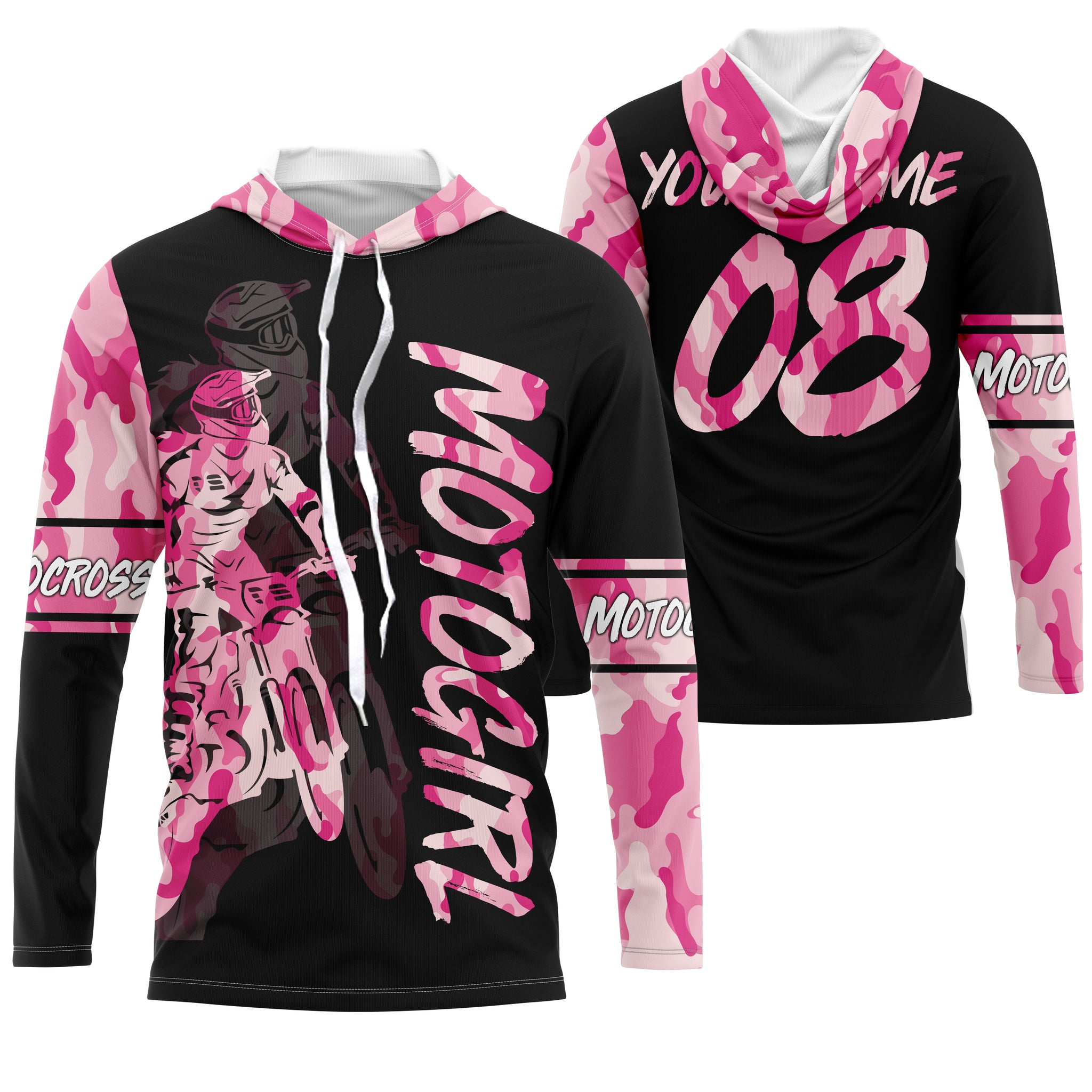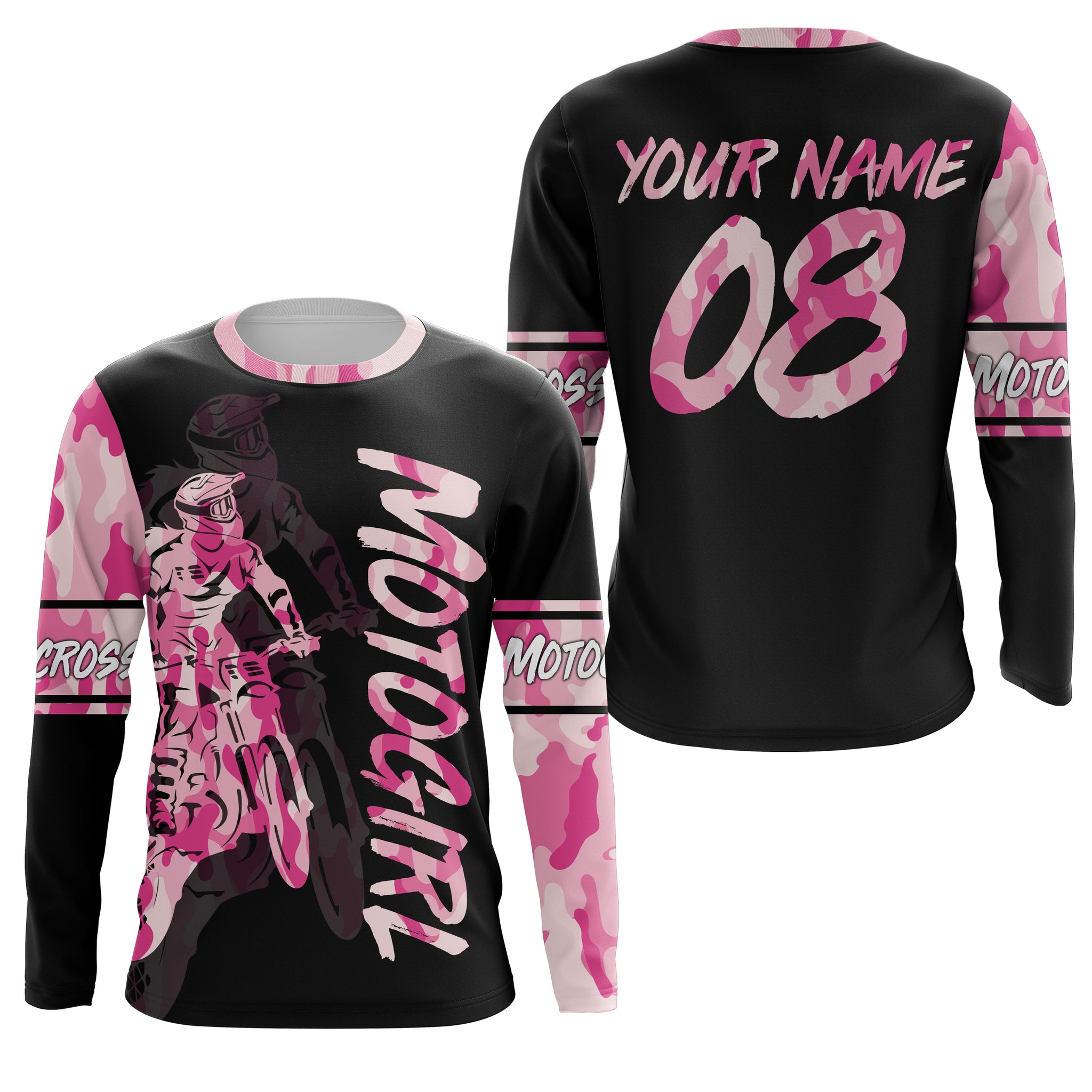 MotoGirl personalized jersey UPF30+ motocross girl pink camo dirt bike riding shirt women bikers NMS1022