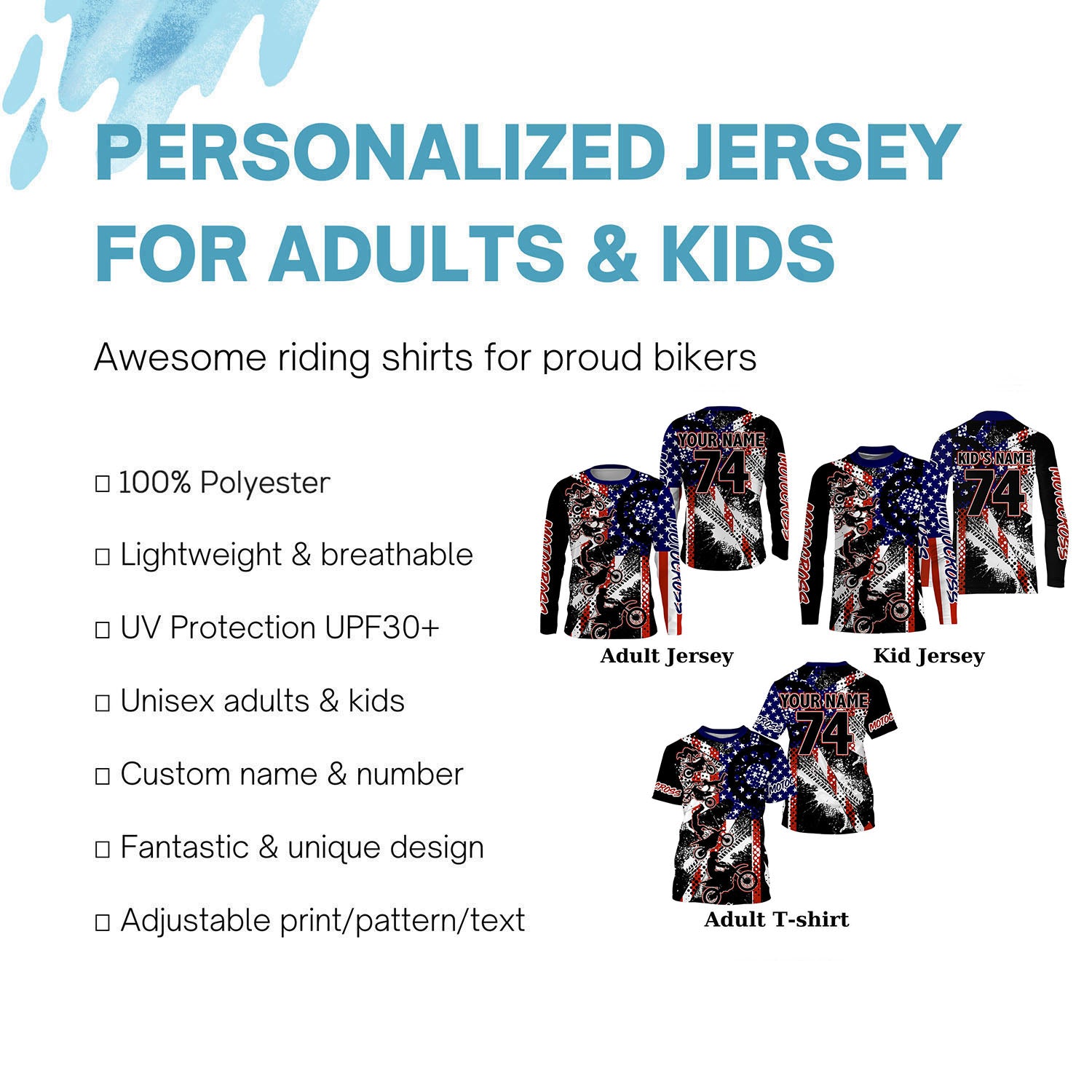 Patriotic dirt bike freestyle kid men women custom MX jersey UPF30+ USA Motocross gear racing shirt PDT349
