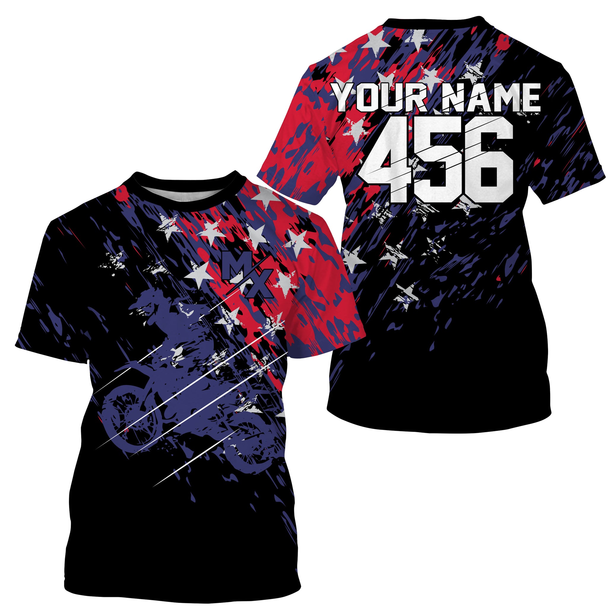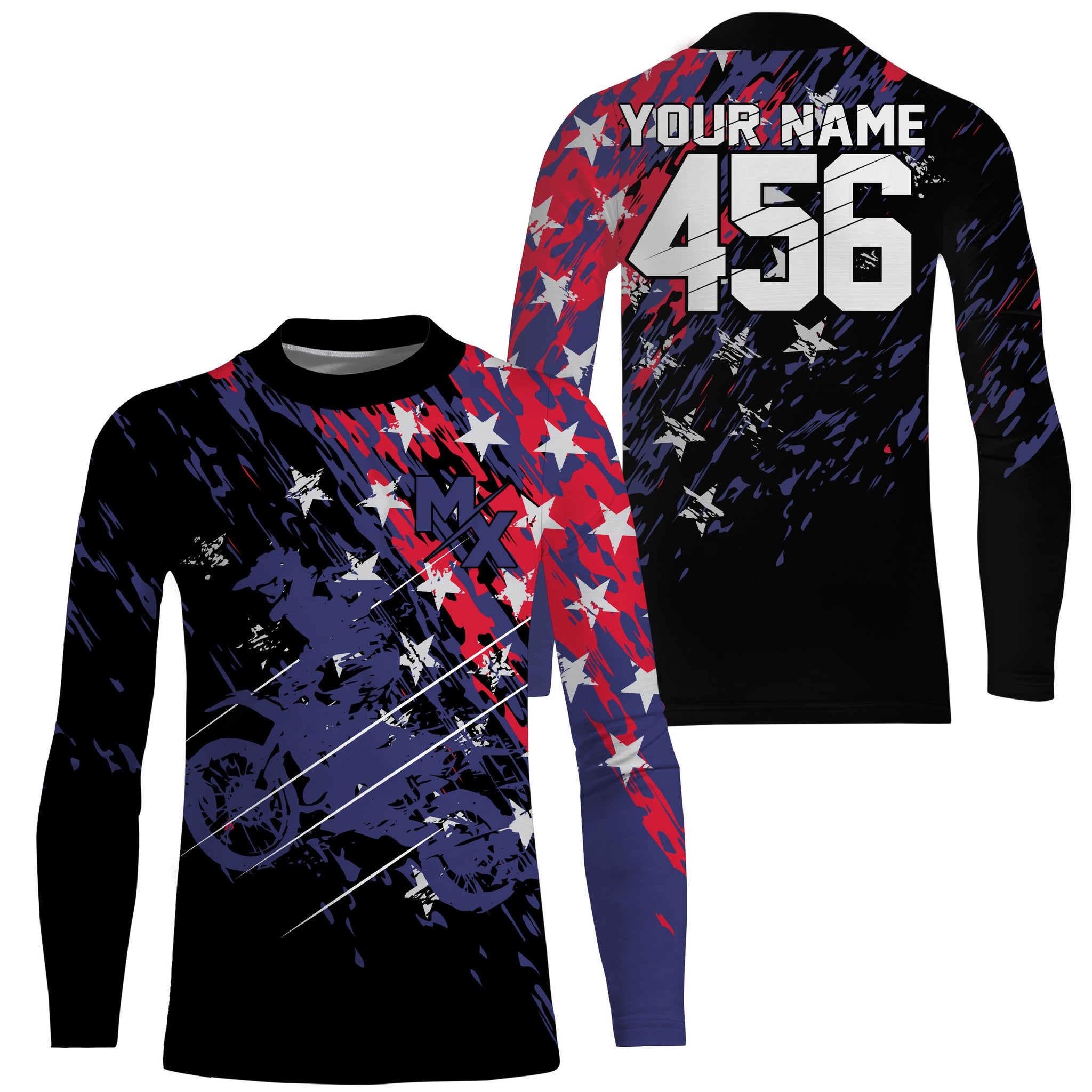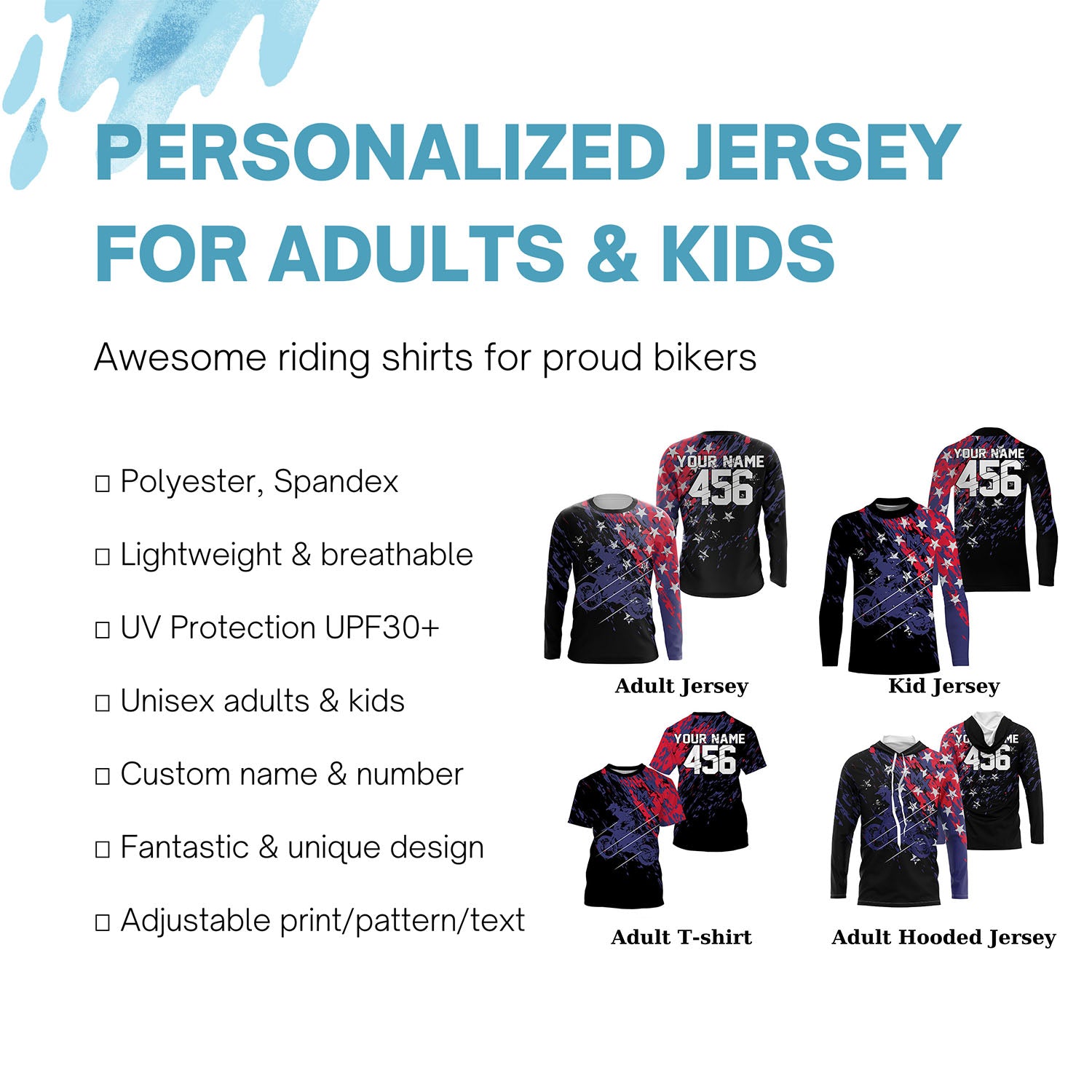 Personalized dirt bike jersey American flag adult&kid UPF30+ Motocross MX Racing off-road shirt| NMS912