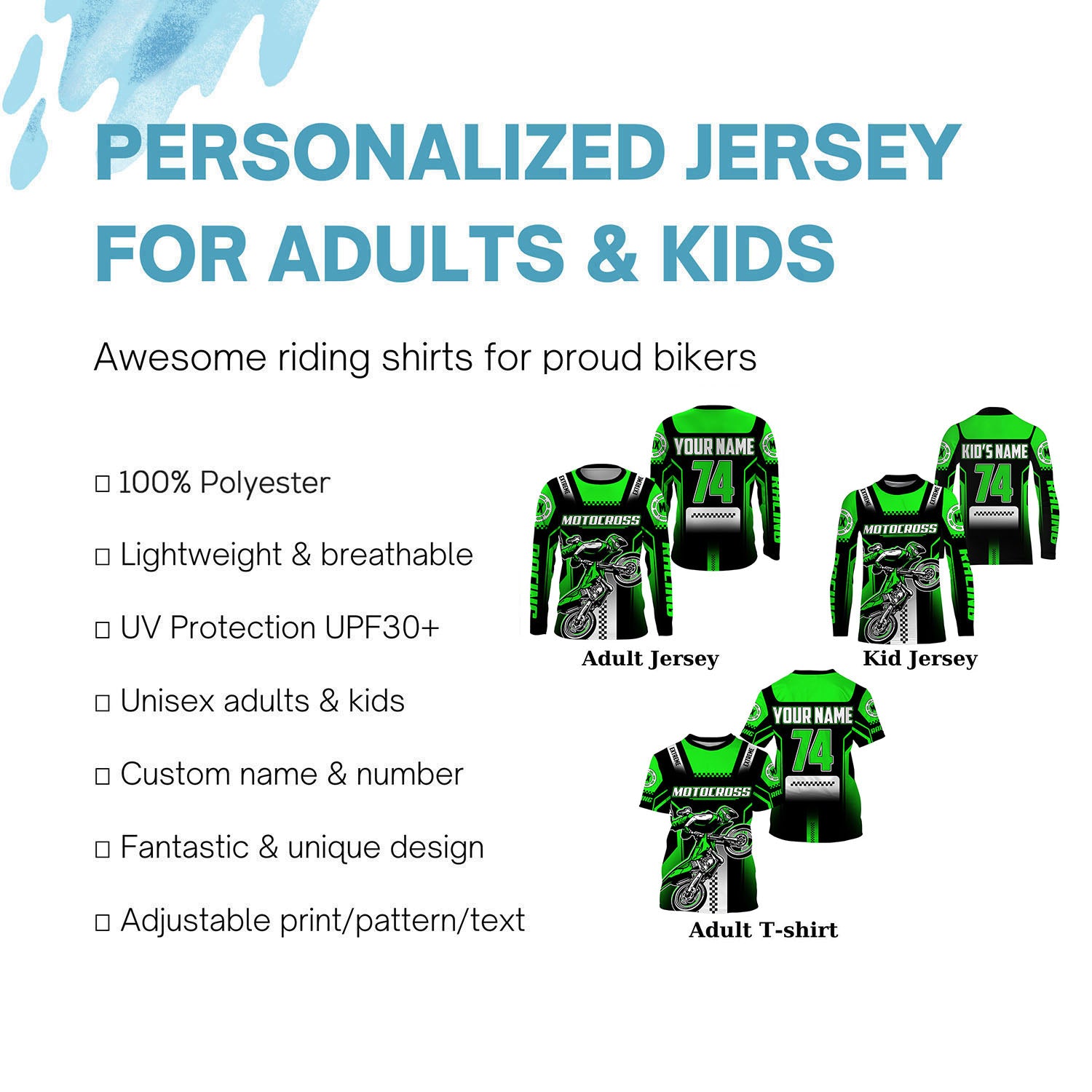 Personalized green Motocross jersey UPF30+ youth&adult dirt bike riding off-road extreme MX shirt PDT256