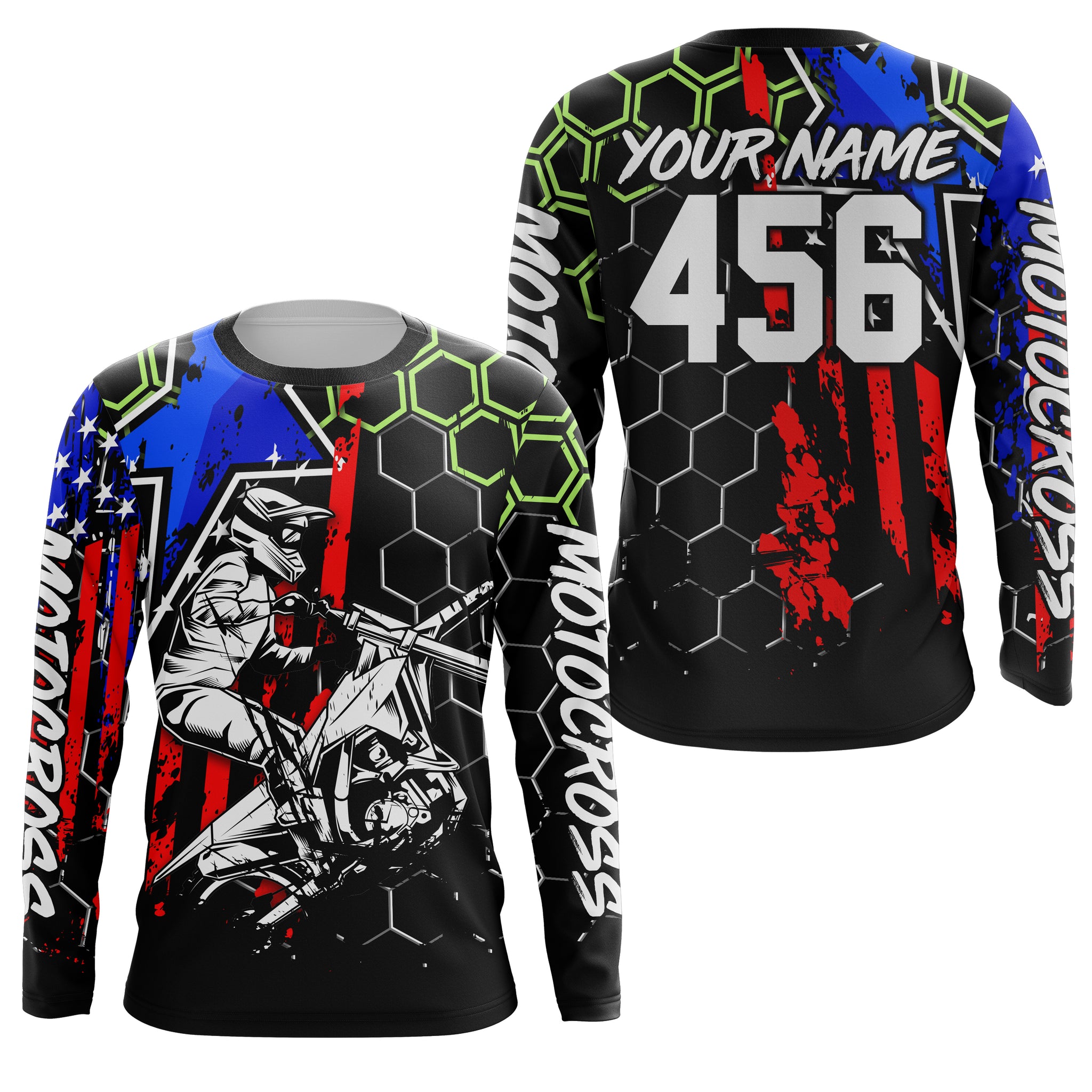 Personalized Motocross Jersey Kid Men UPF30+ US Flag Dirt Bike Shirt MX Racing Off-Road Motorcycle PDT625