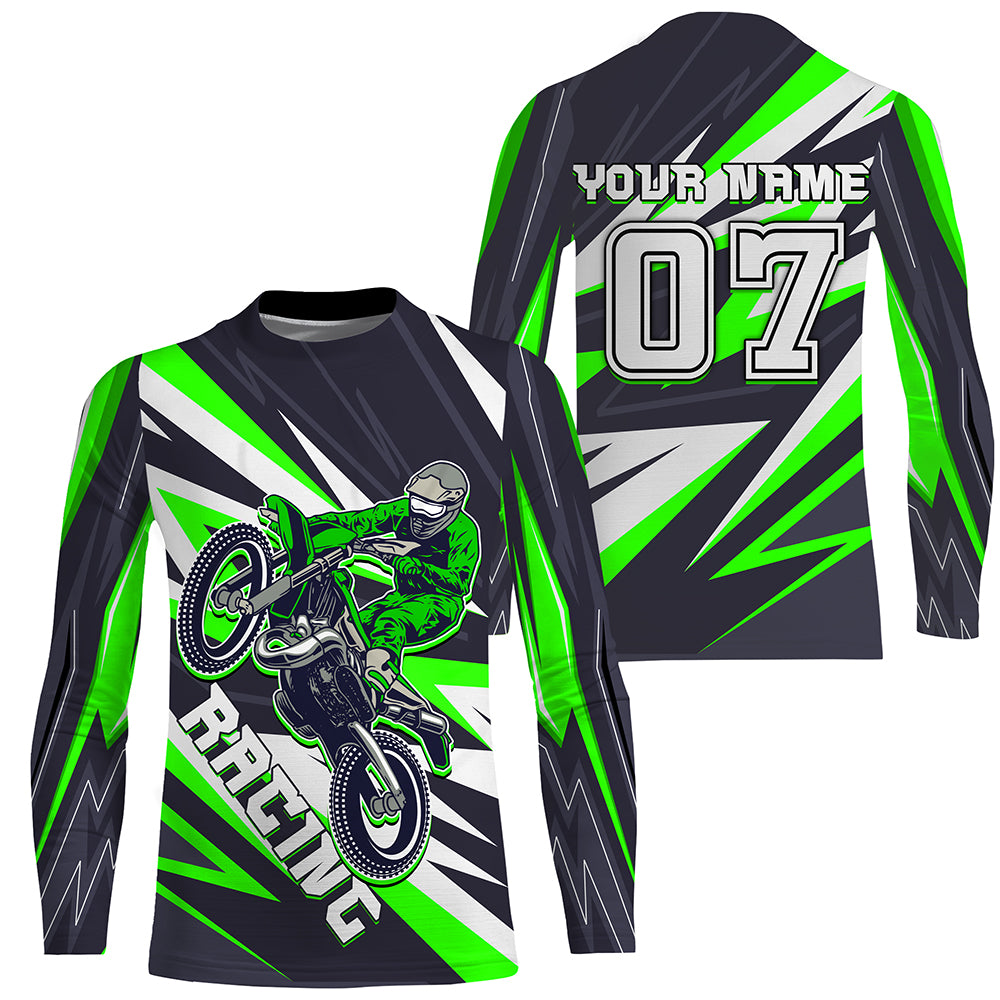 Personalized Racing Jersey Green UPF30+ Youth Men Women Dirt Bike Shirt Supercross Motocross NMS1462