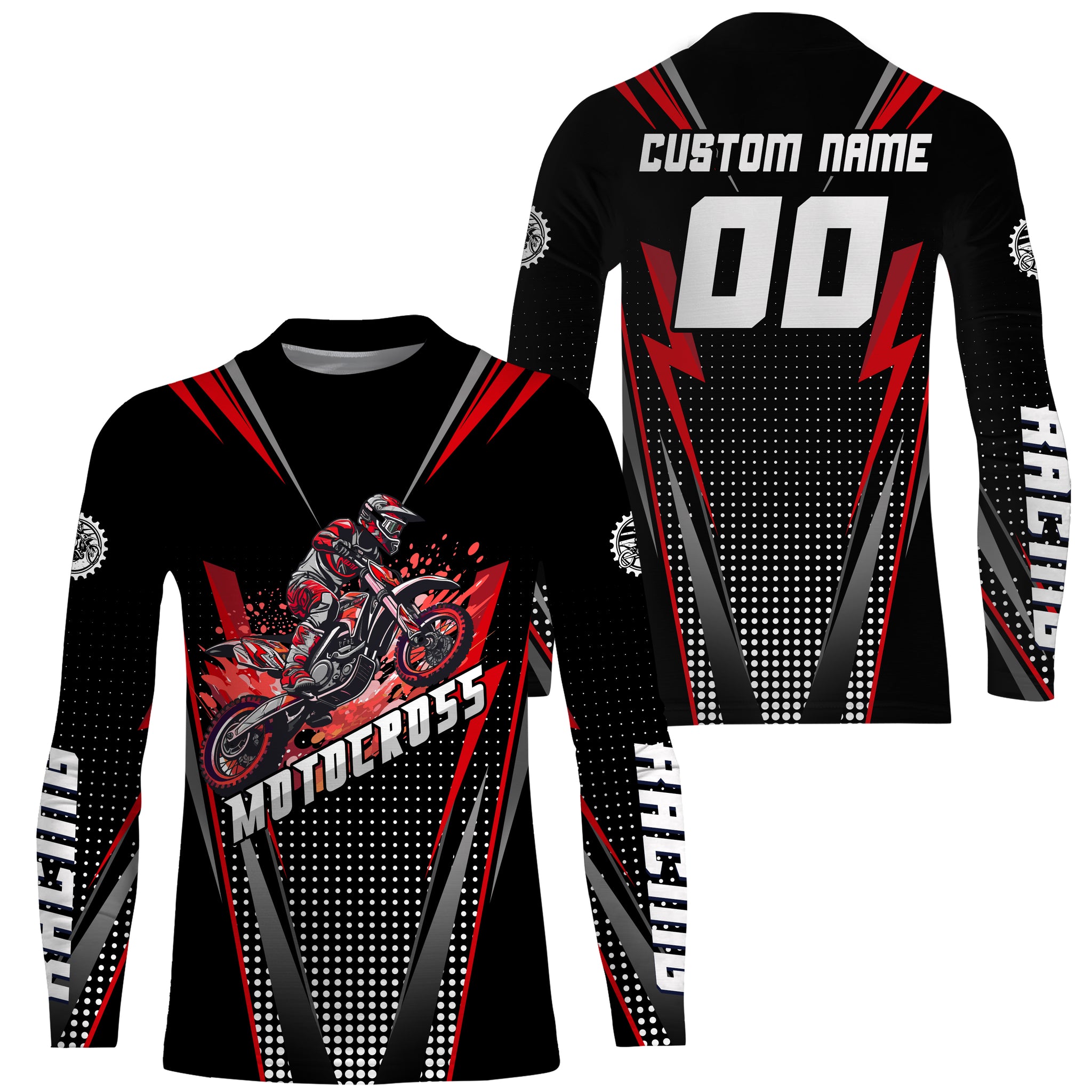 Personalized Red Motocross Jersey Kid&Adult Upf30+ Dirt Bike Shirt Off-Road Motorcycle Racing PDT671