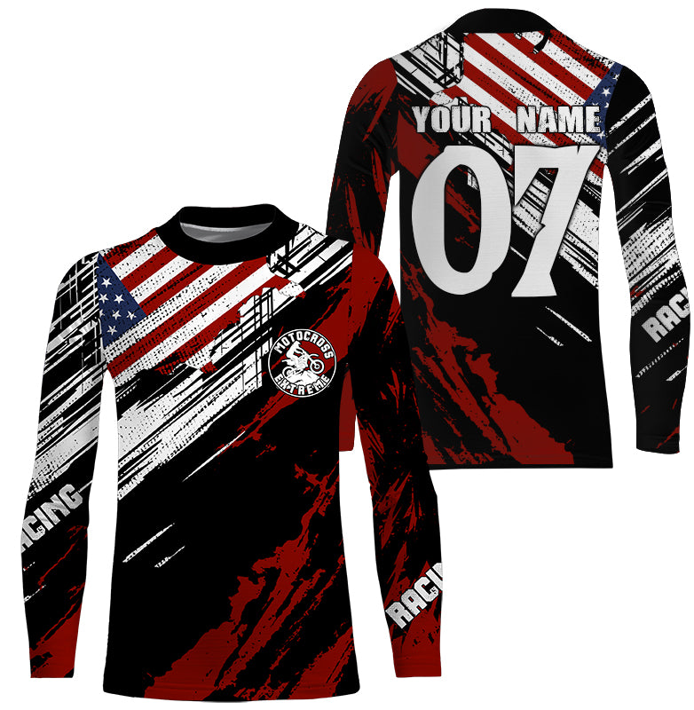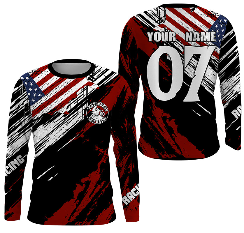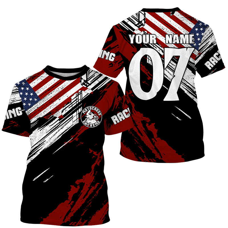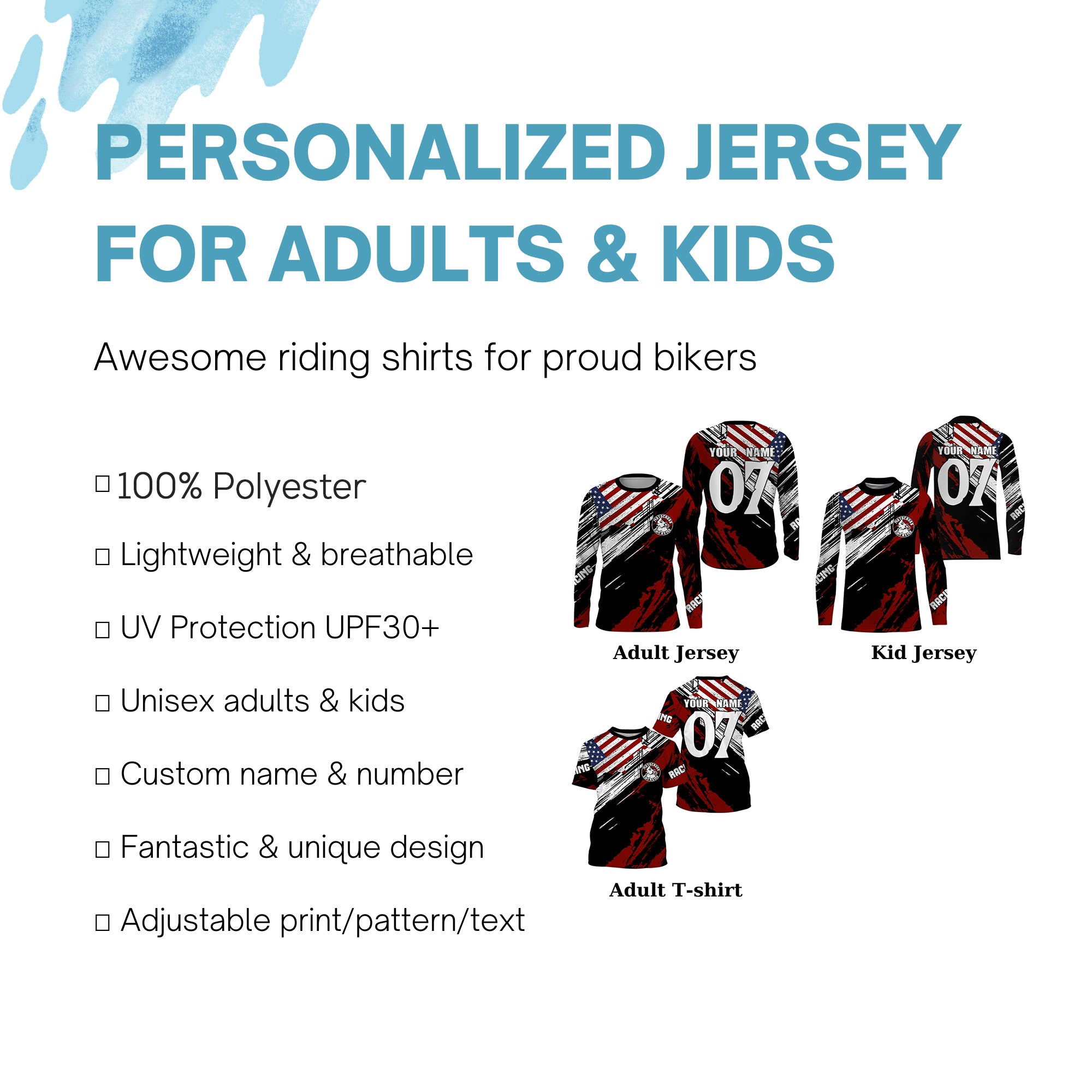 Personalized USA flag Motocross jersey UPF30+ dirt bike off-road shirt kid men women Patriotic PDT352