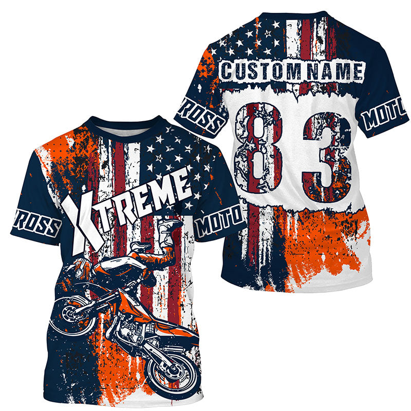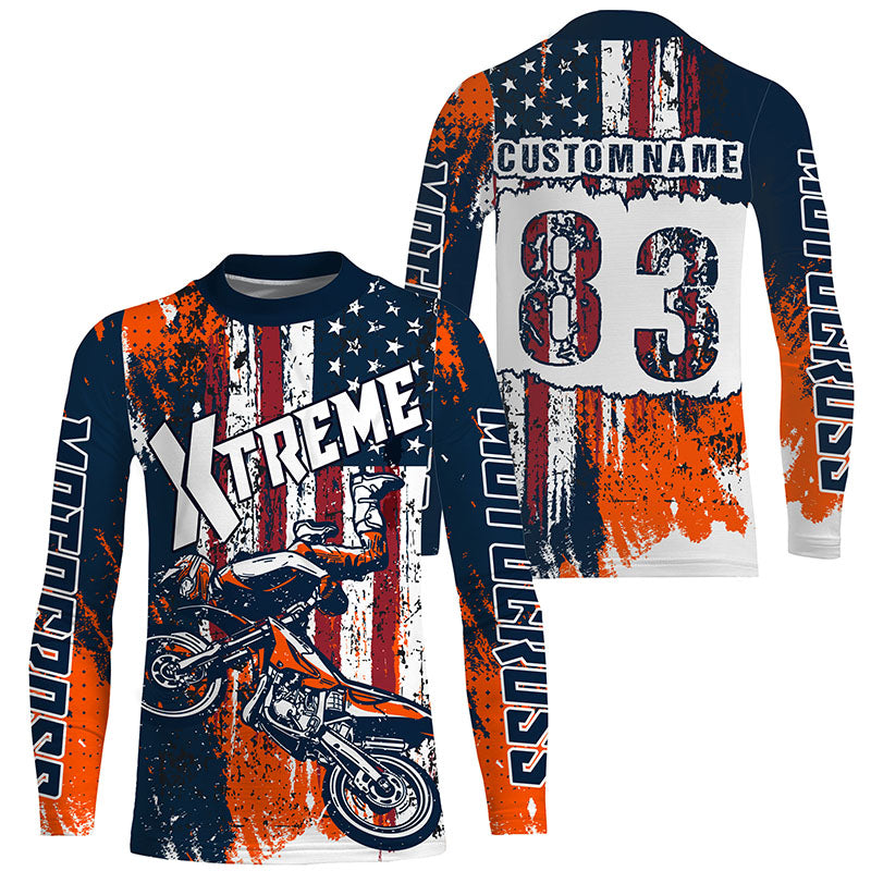 Personalized USA Motocross jersey adult&kid UV protective MX motorcycle Patriotic dirt bike shirt PDT354