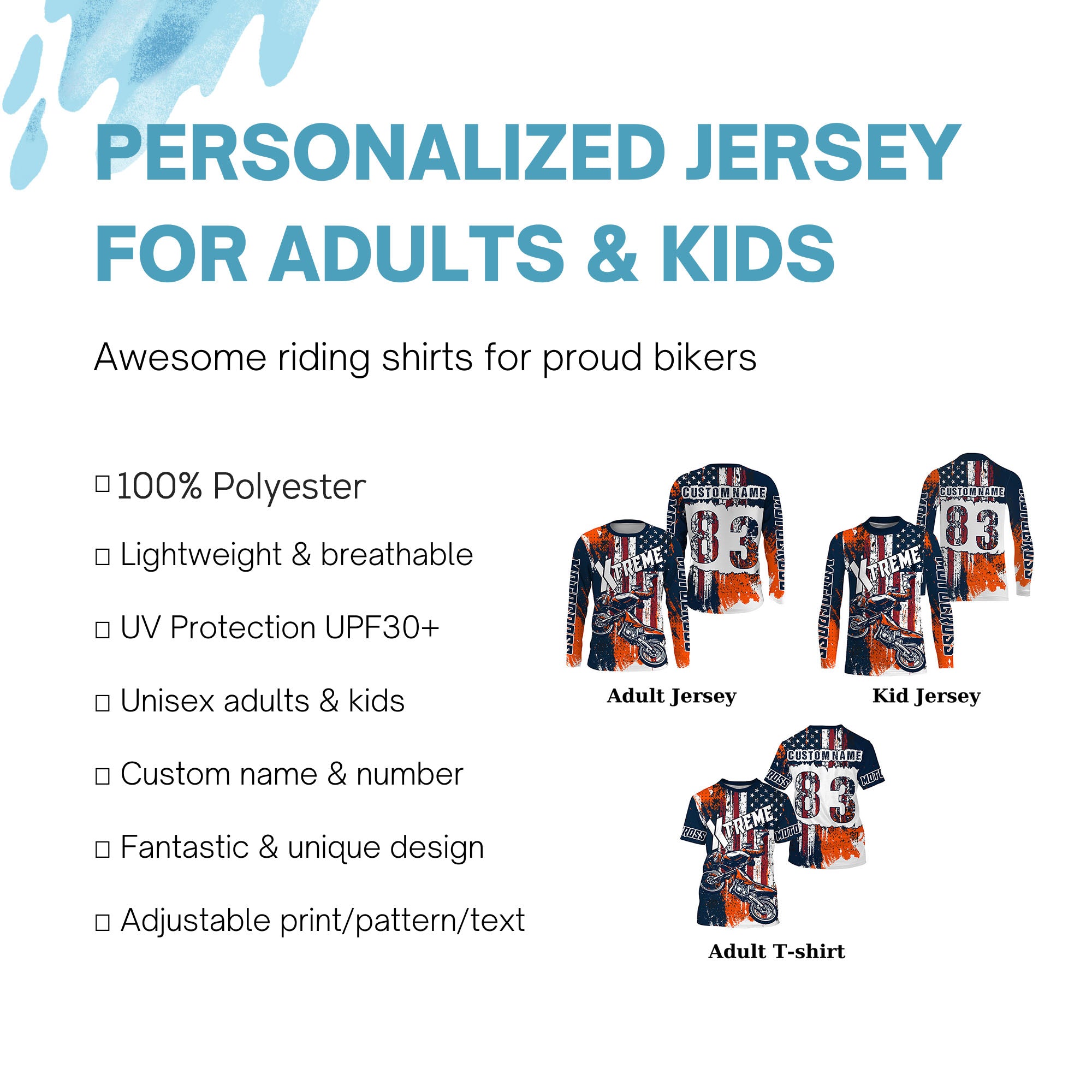 - PERSONALIZED RIDING JERSEY: This super cool shirt is exactly what all bikers are looking for. Add your name/number to make it a unique one that bears your own imprints.