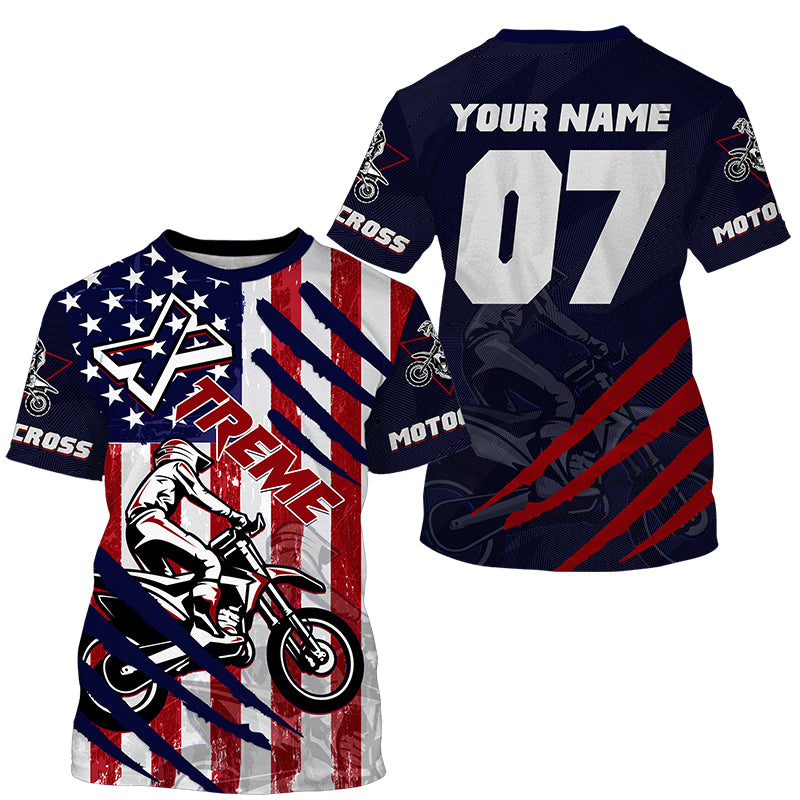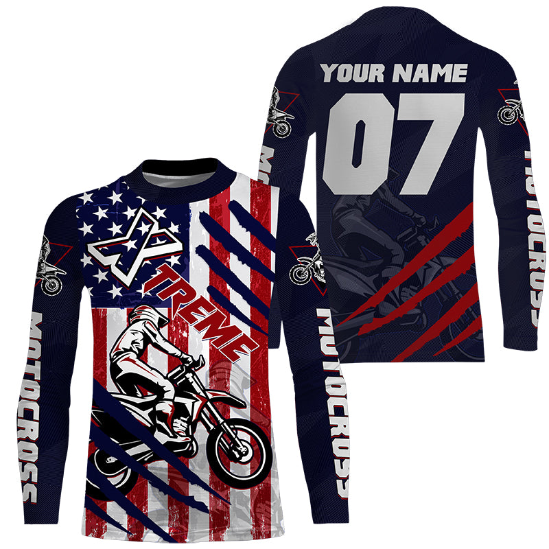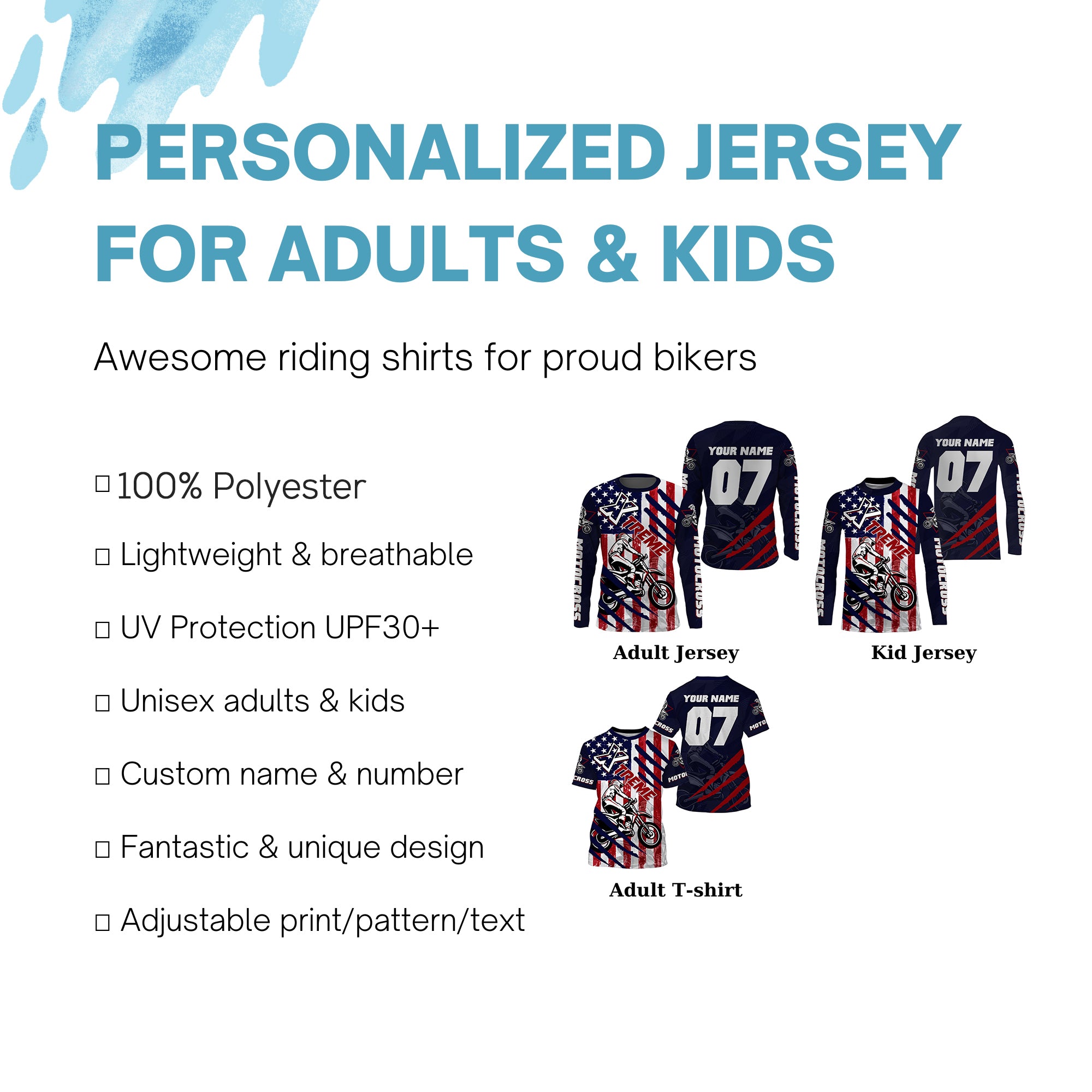 Personalized USA Motocross jersey youth women men UPF30+ dirt bike off-road extreme racing shirt PDT273