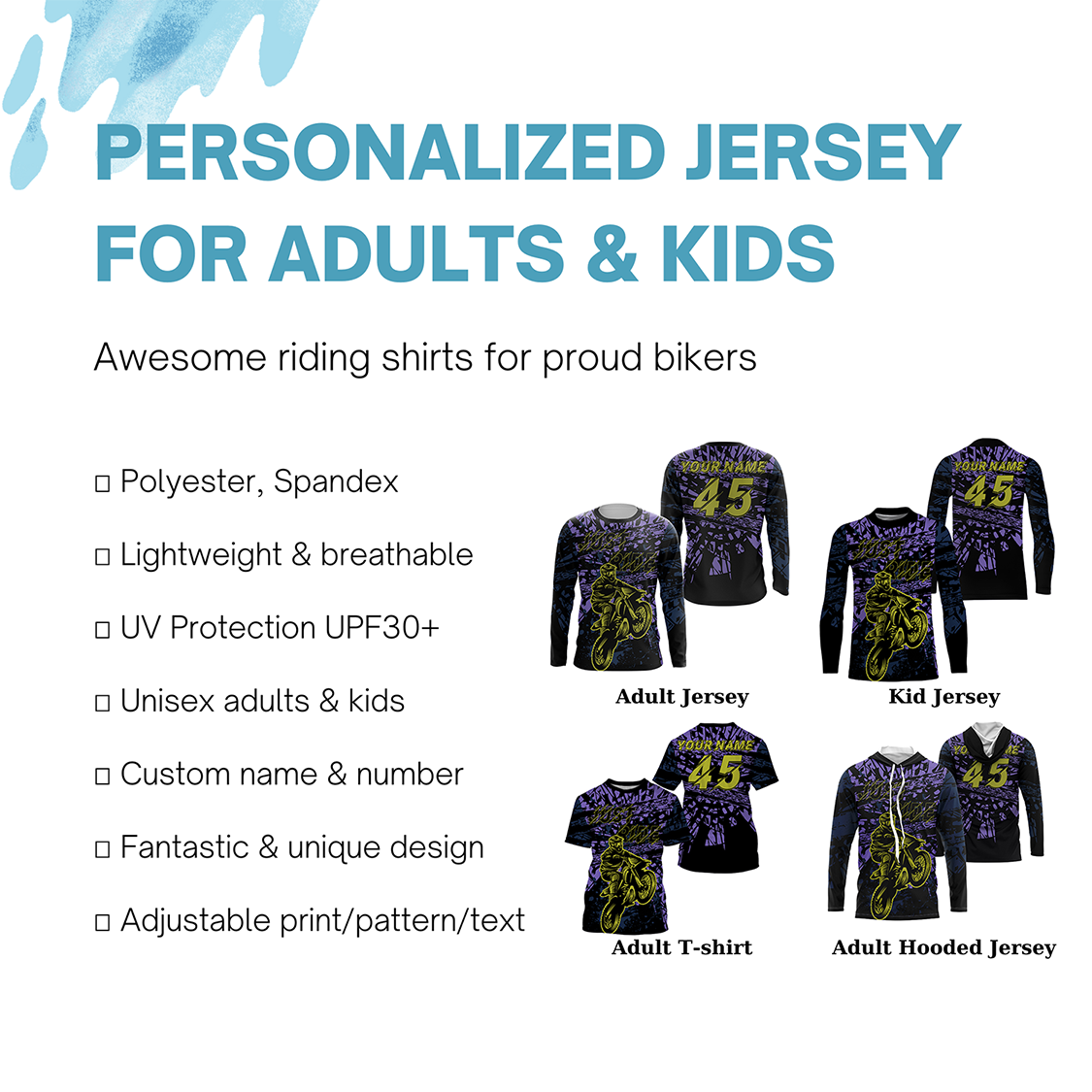 Purple personalized dirt bike jersey adult&kid UV protective off-road Just Ride motorcycle shirt PDT02