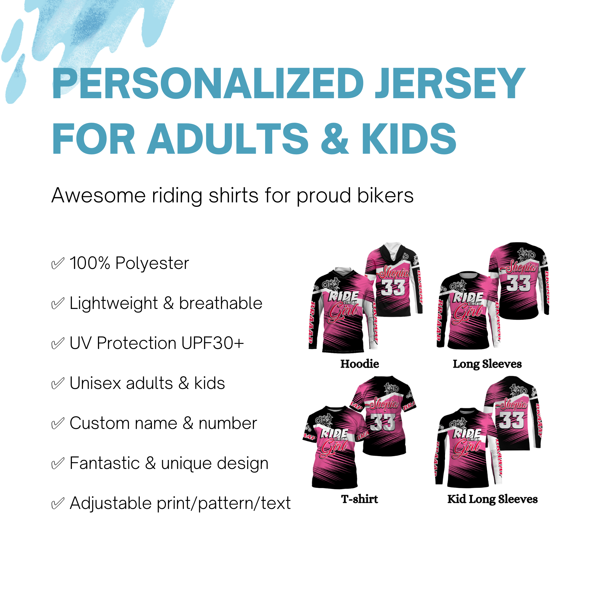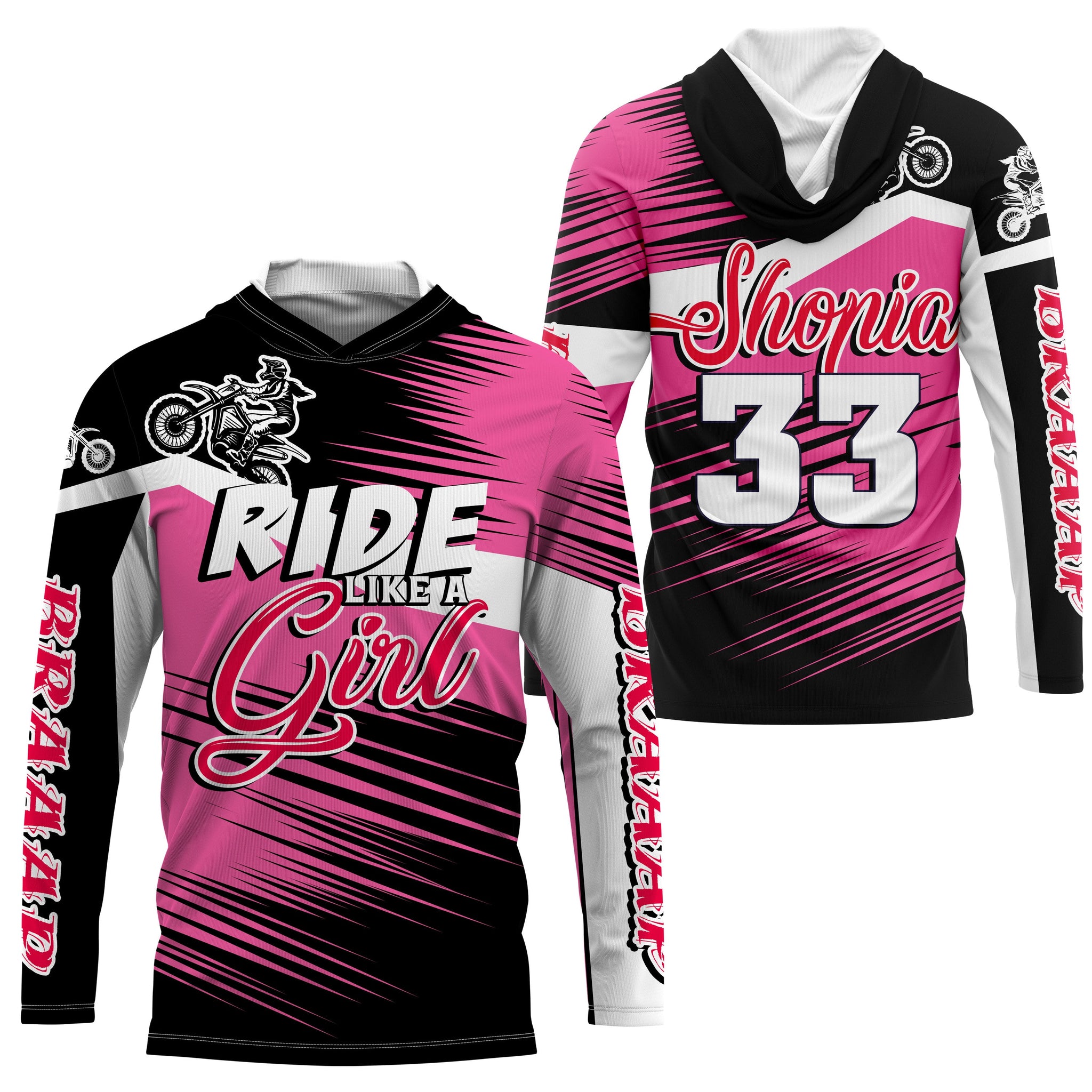 Ride Like A Girl Motocross Jersey Personalized UPF30+ Pink Dirt Bike Riding Shirt Women Girls NMS528