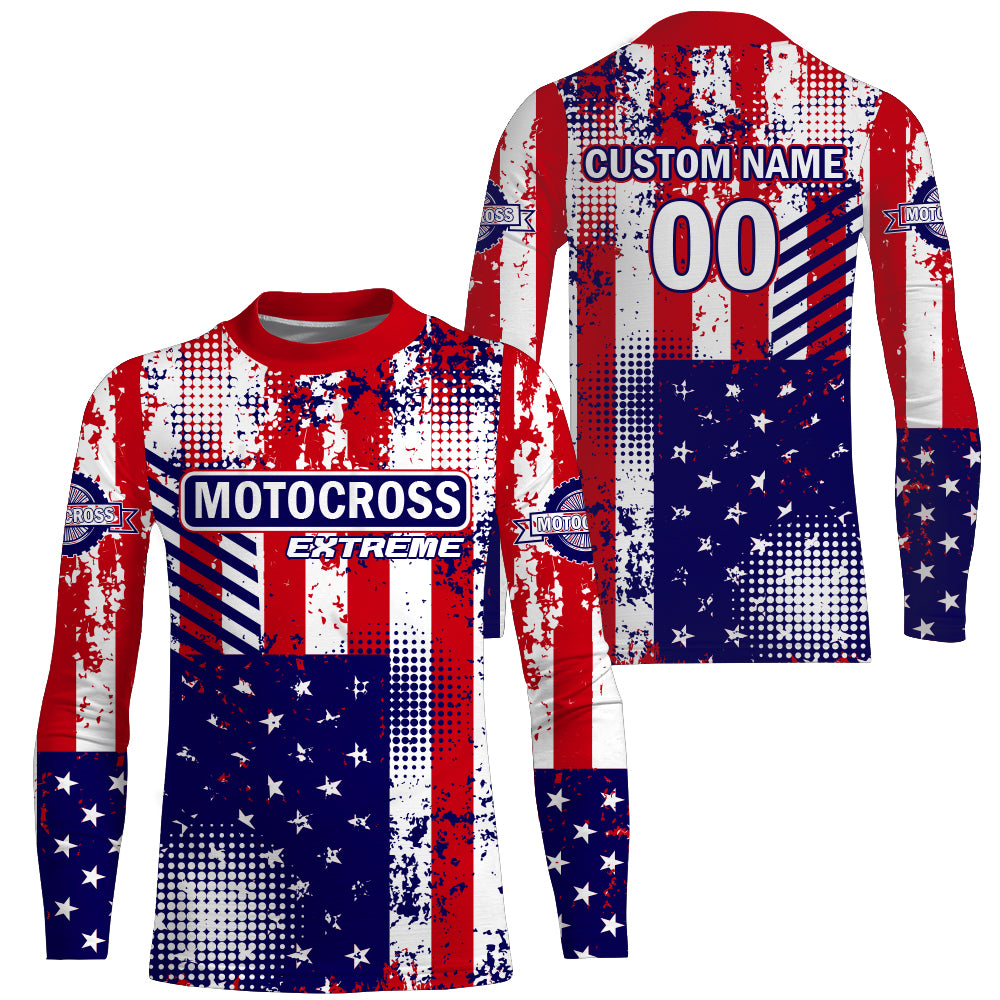 USA Motocross Jersey Youth Men Women UPF30+ Custom Dirt Bike Shirt Boys Girls Patriotic Motorcycle PDT540