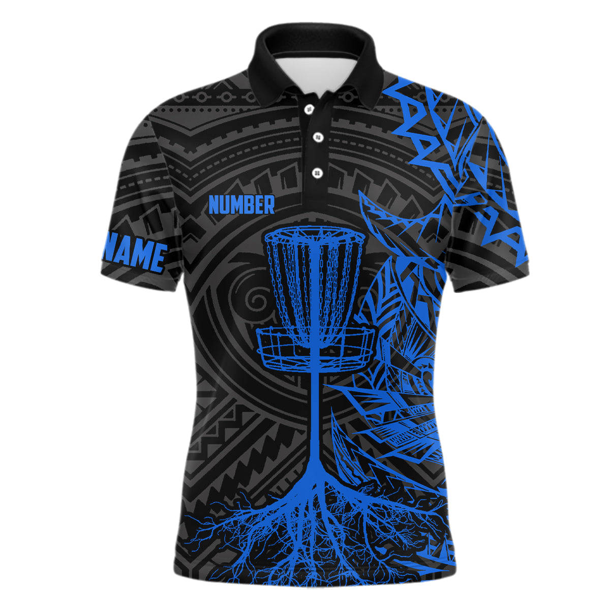 Blue tribal Mens disc golf polo shirt custom black disc golf basket jerseys team mens disc golf shirt NQS7584