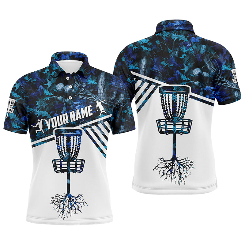 Mens disc golf polo shirt blue camo custom name disc golf team shirt, disc golf gifts NQS4304