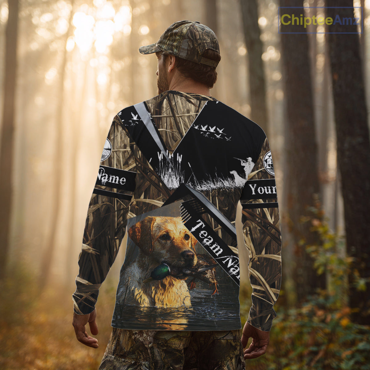 Duck Hunting Camo Shirt with Yellow Labrador Retriever for Duck Hunter - Best Duck Hunting Gifts NBT47