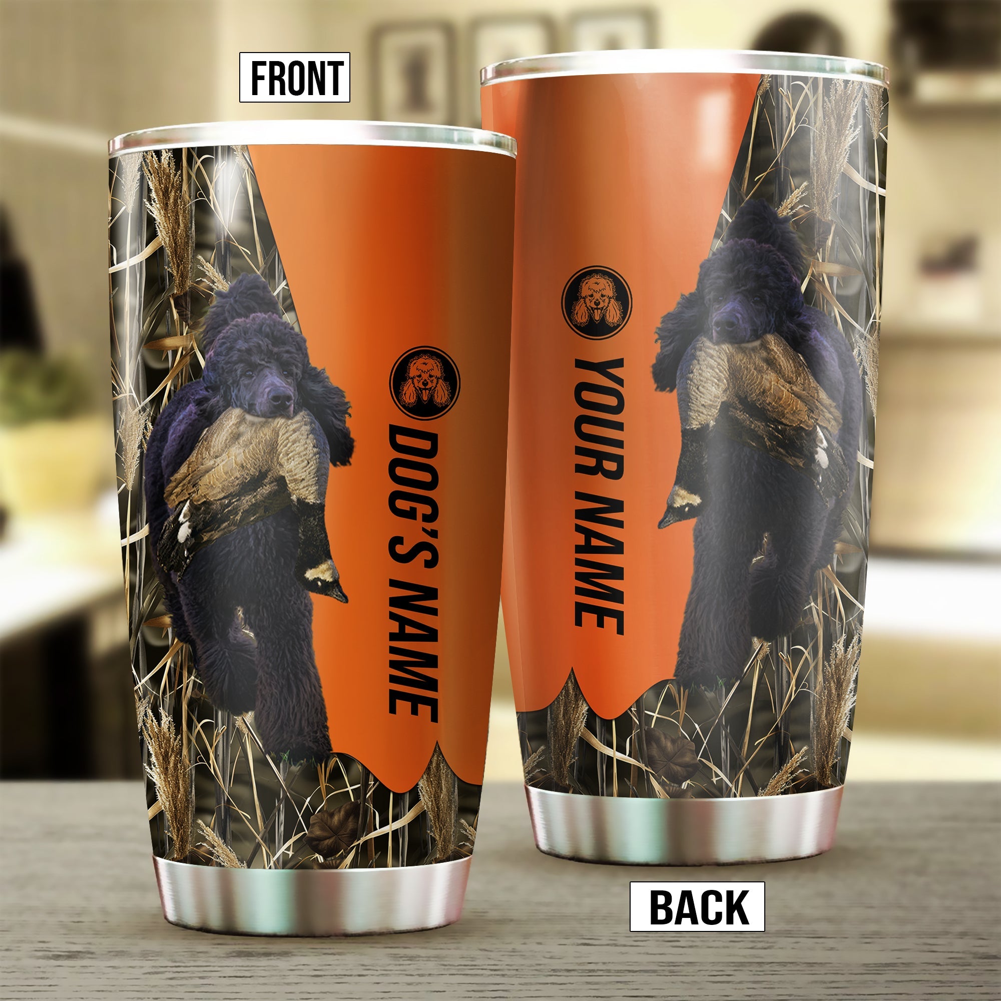 Poodle Birds & Deer shed Hunting Dog Custom name Stainless Steel Tumbler Cup FSD4327