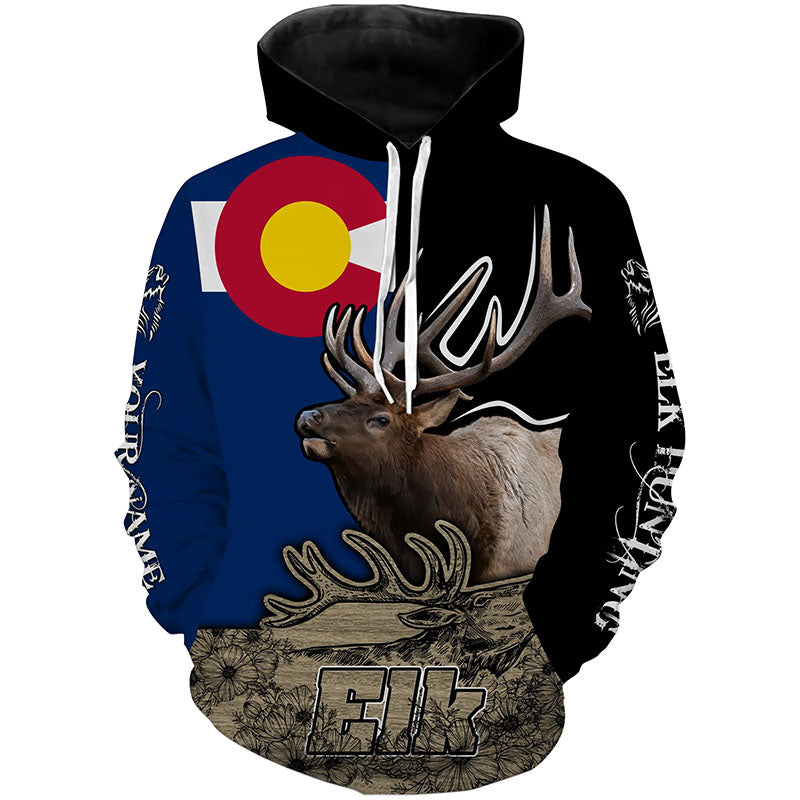 Colorado Elk Hunting CO flag Custom Name Full printing Shirts, Personalized Elk hunting gifts FSD3125