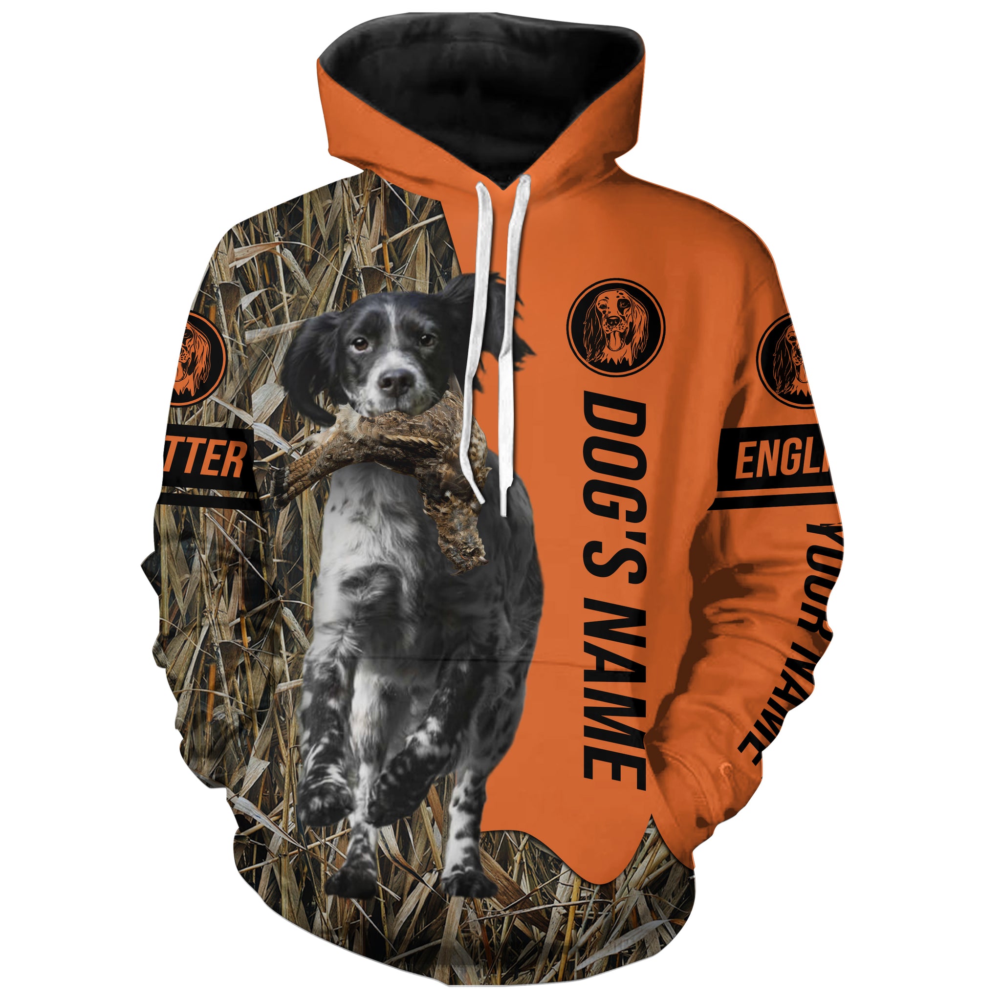 English Setter (black and white) Hunting Dog Customized Name Shirts for Hunters, Bird Hunting FSD4234