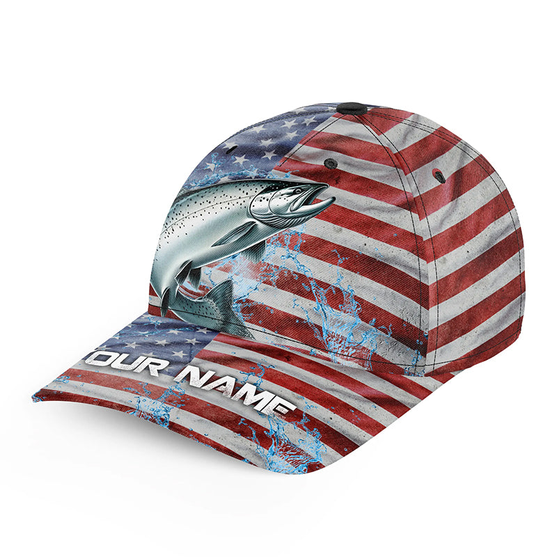 American flag patriot Chinook Salmon Fishing Baseball Angler Hat Cap, Personalized Salmon Fishing Gift NQS8298