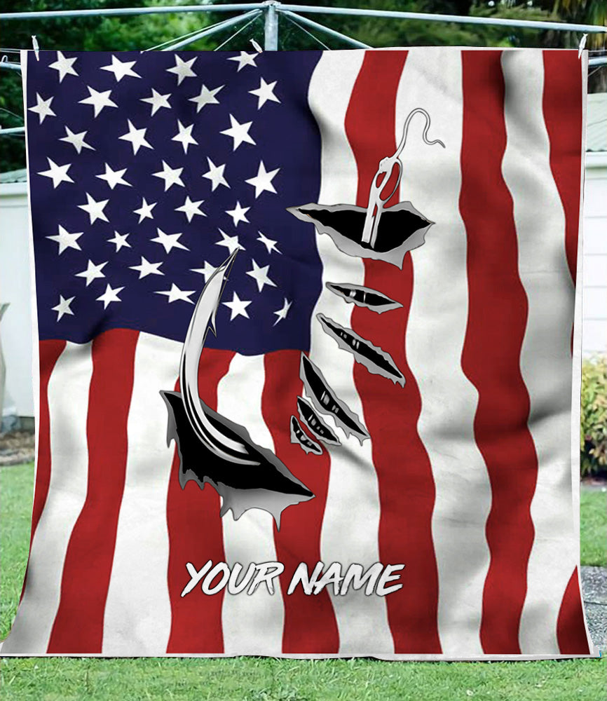 Custom Fishing Blanket 3D Fish hook American Flag 3D Printed Soft Warm Fleece Blanket - unique brithday, Christmas gift ideas for Fishing lovers - IPH2314