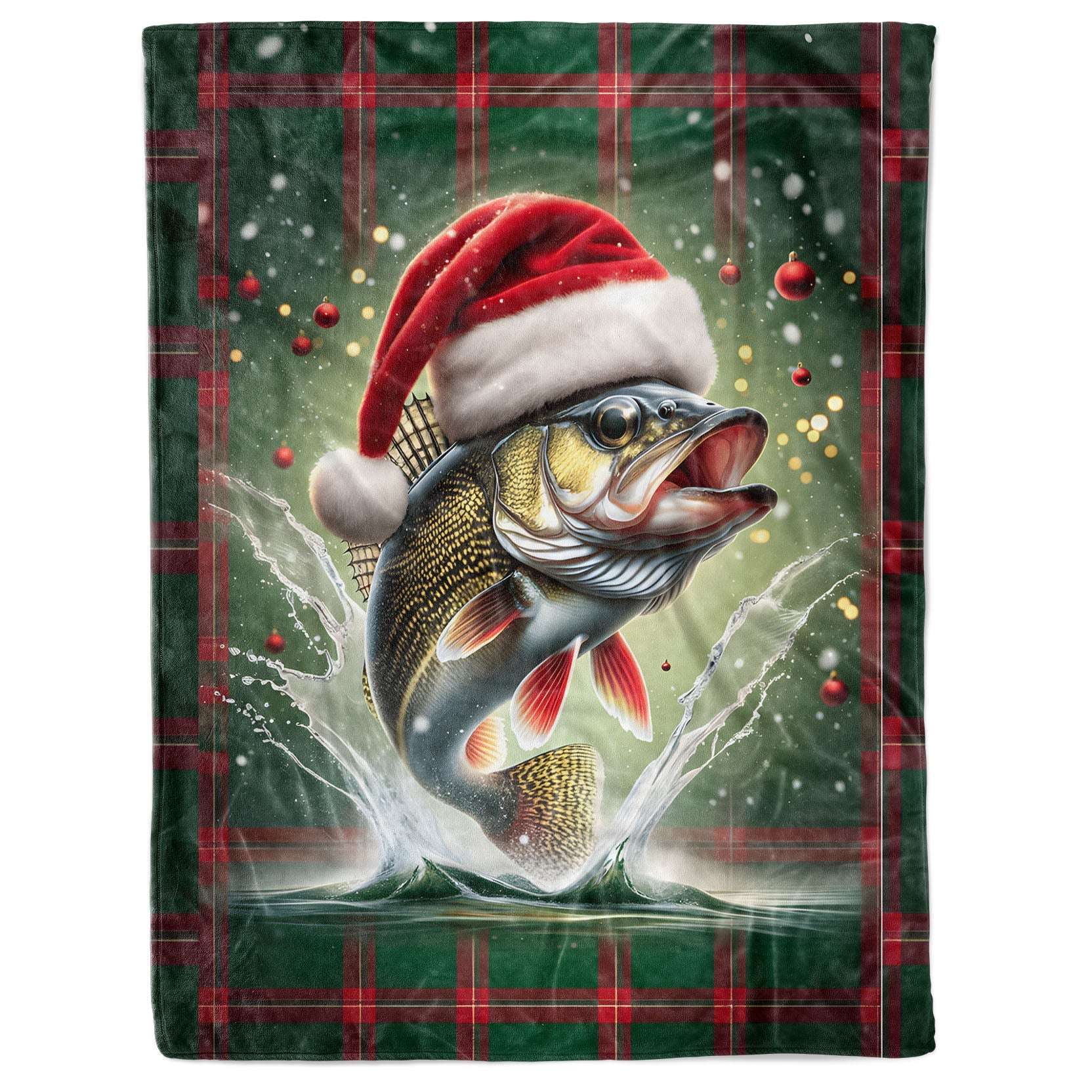 Christmas Walleye Fishing Blanket, Christmas Plaid Walleye Fishing Gifts IPHW5679