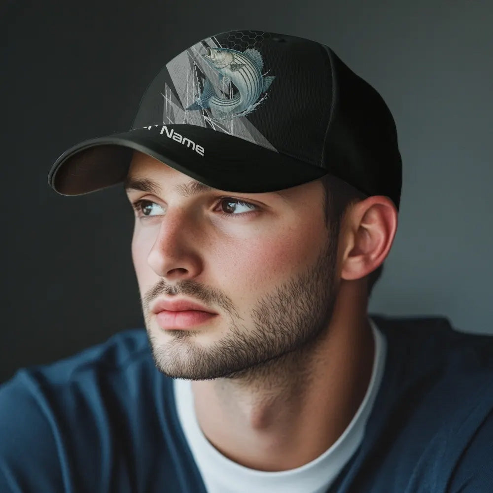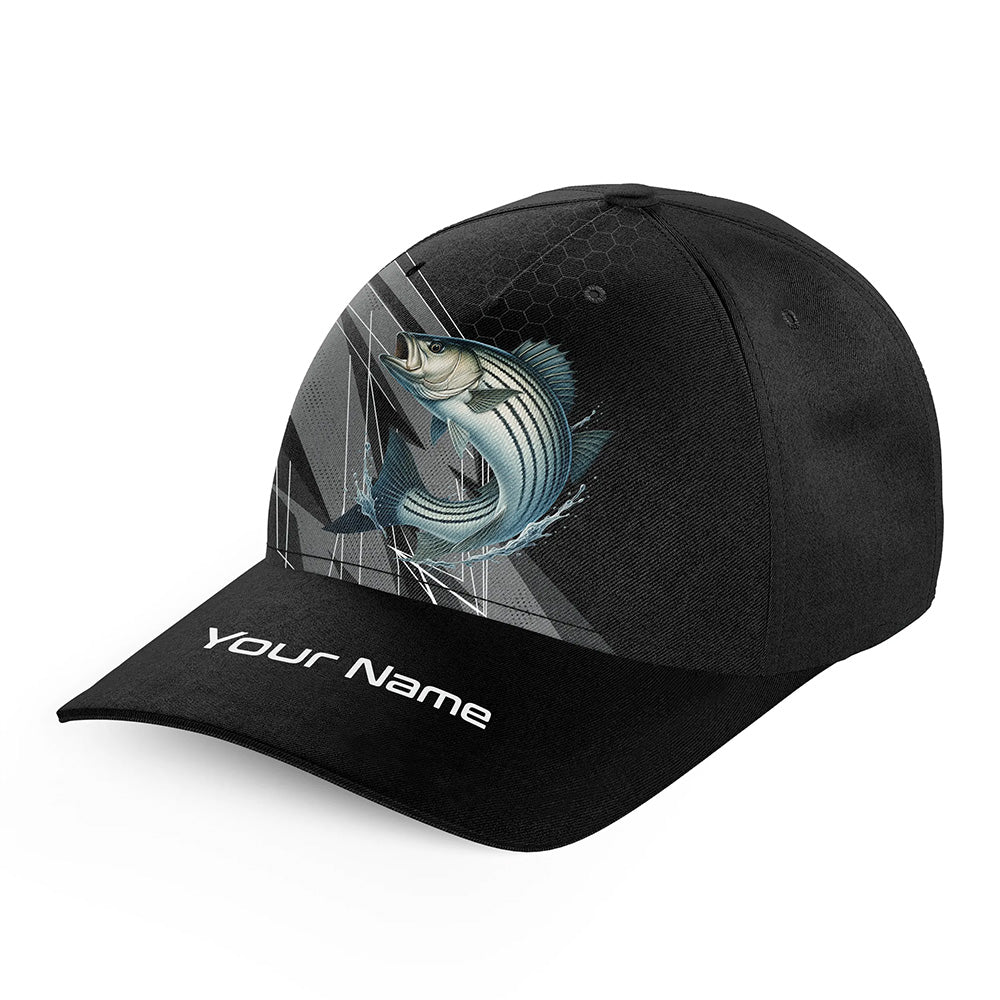 Personalized Black camo Striped Bass Fishing baseball cap, Striper fishing hats for men, women NQS10144