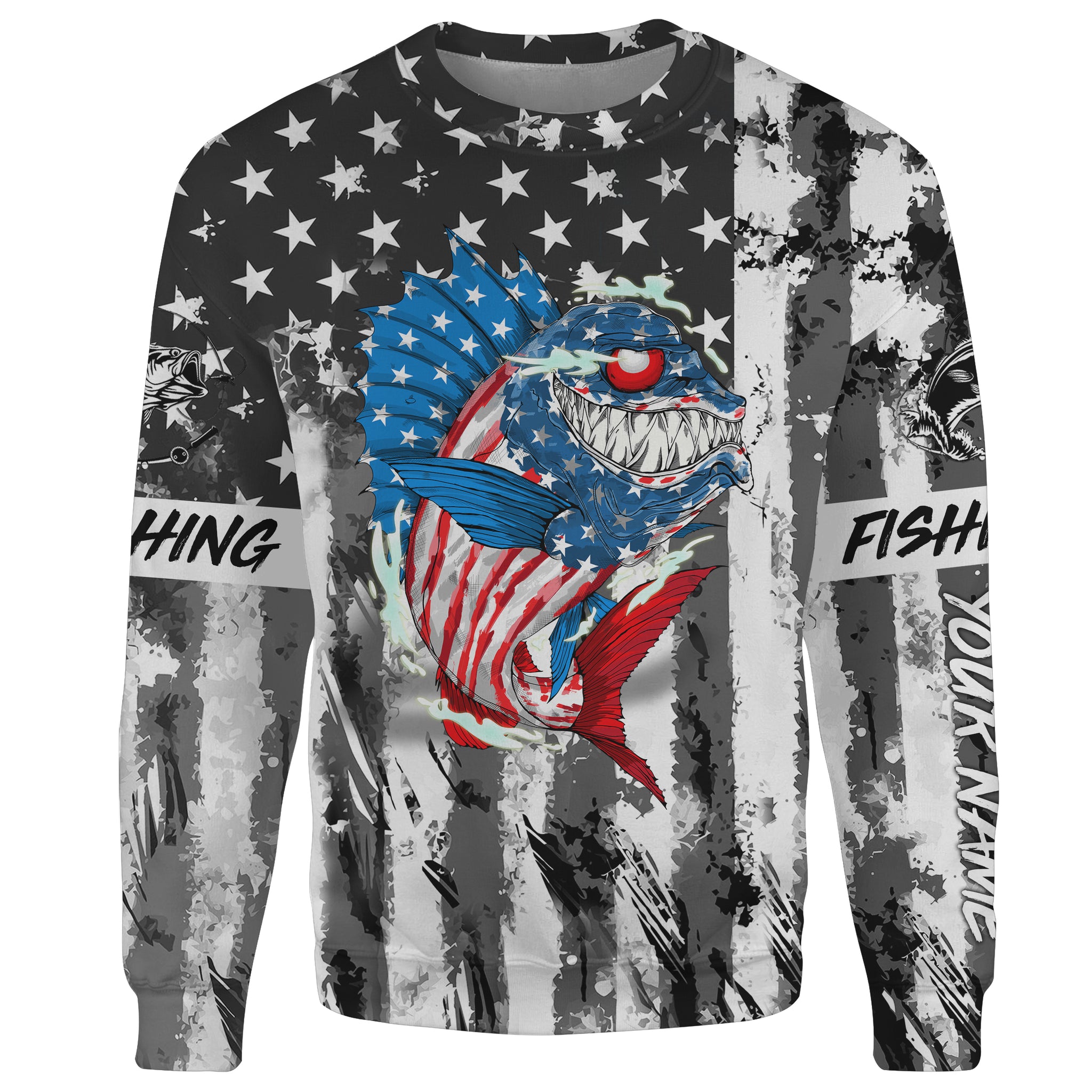 American flag angry bass fishing ChipteeAmz's art shirts UV protection TATS213
