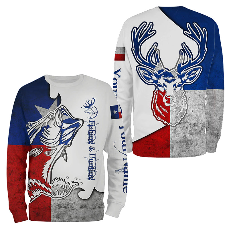 Texas Fishing and Hunting Deer and Bass all over print shirt - Personalized Gift for Hunter Fisherman FSD3191