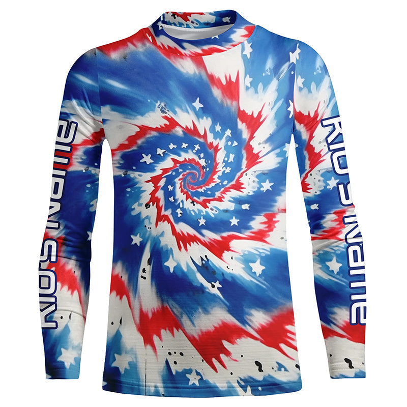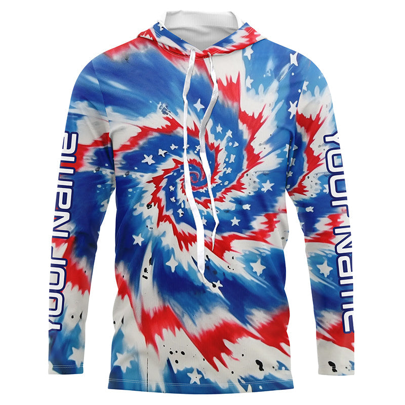 American Flag Tie Dye Custom Long Sleeve Performance Fishing Shirts, Patriotic Fishing Jerseys IPHW4726