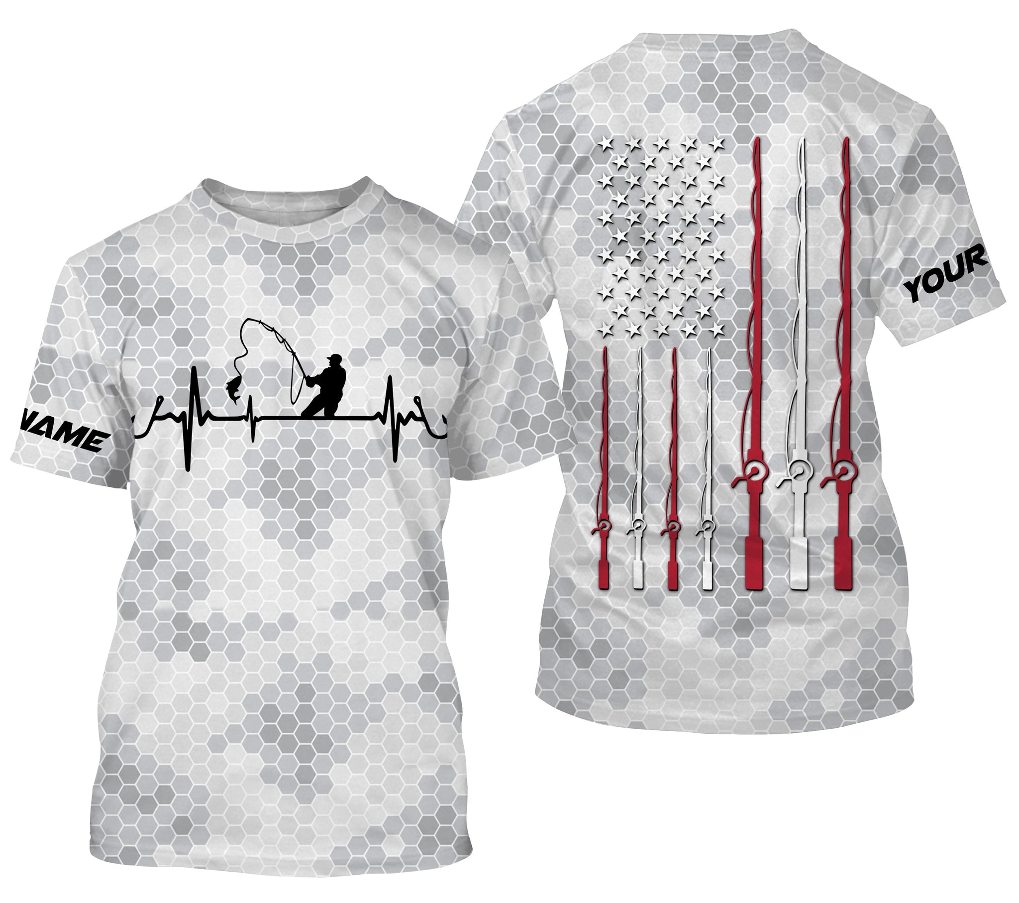 Fishing Heartbeat American flag fishing rod custom name Long Sleeve performance Fishing Shirts jerseys NQS4533